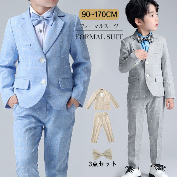 ポイント超超祭利用可 子供スーツ 男子 キッズ スーツ フォーマル チェック柄 入学式 卒園式 男の子 3点セット スーツ カジュアル タキシード 結婚式 ジュニア