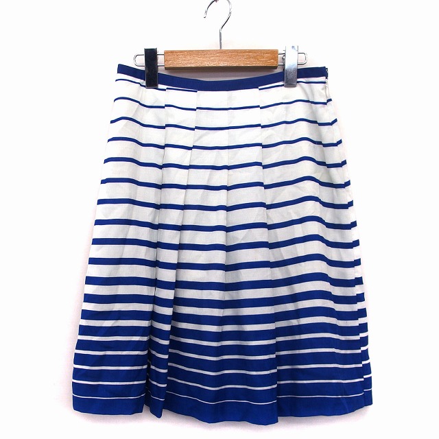 【中古】オフオン ofuon プリーツ スカート 膝丈 ボーダー 柄 グログランテープ 薄手 40 ホワイト 白 ブルー 青 /HT32