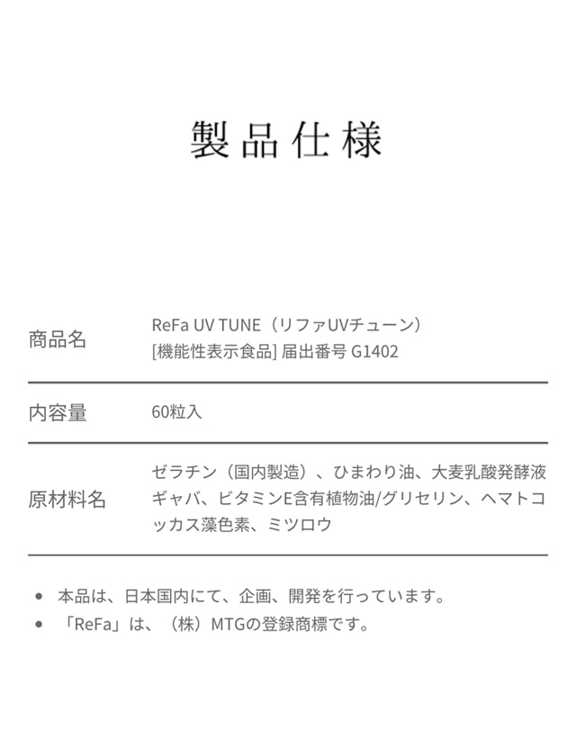 ReFa 公式 飲むUVケア リファ UVチューン サプリ 60粒入 サプリメント UVケア 弾力キープ 紫外線ケア 乾燥 GABA アスタキサンチン サプリ 飲む GABA うるおい 弾力 1日2粒目安 UV TUNE 日焼け止め