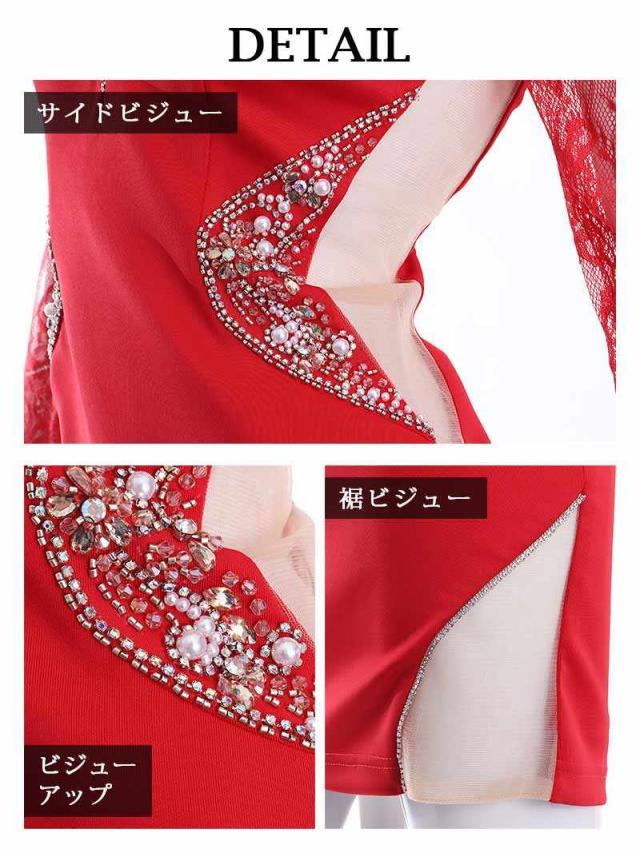 ☆七分袖のミニドレスは二の腕をカバーしつつキャバ嬢さんがお仕事しやすいのでおすすめです!!またくびれを強調したサイドメッシュのカッティングが細見え効果も抜群で随所にあしらわれたビジューが華やかさもONするタイトドレスです。