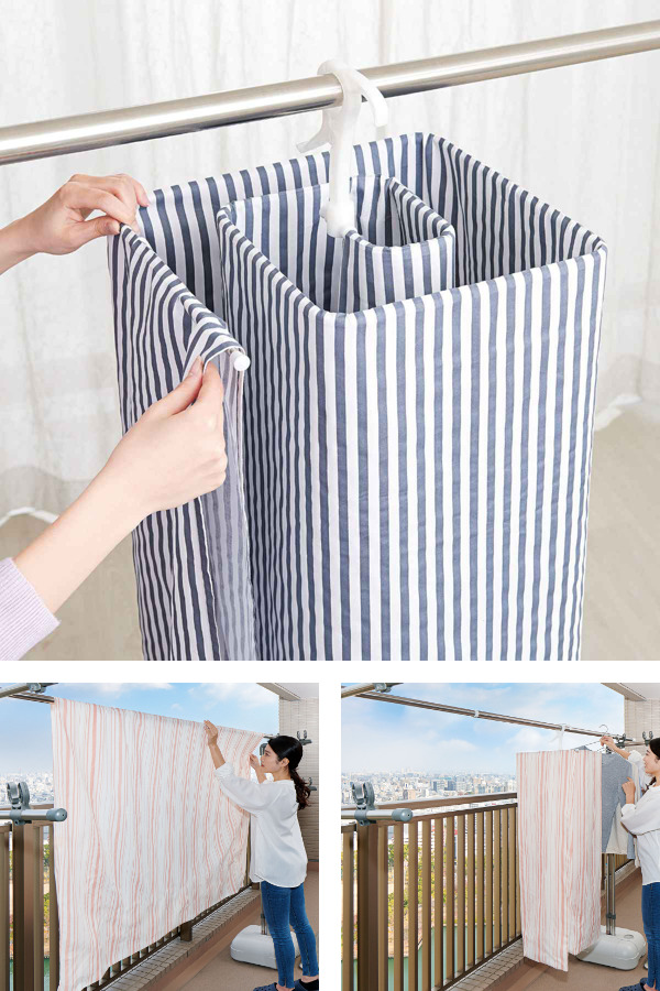 省スペースでシーツやバスタオルが干せる物干しハンガー