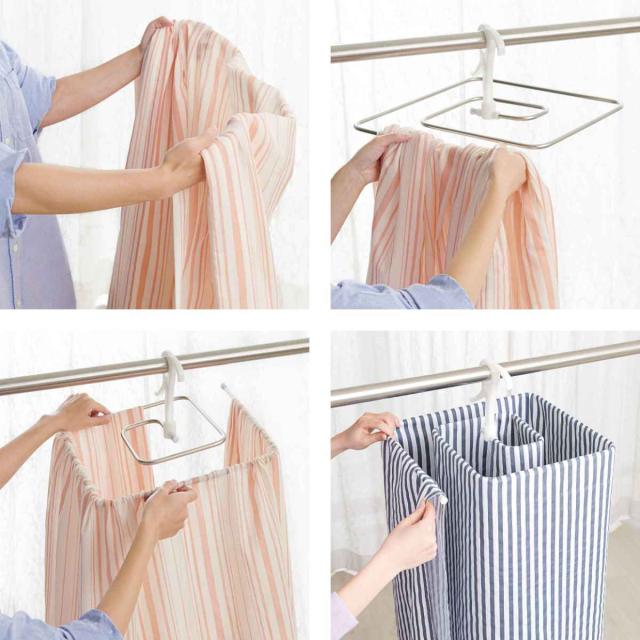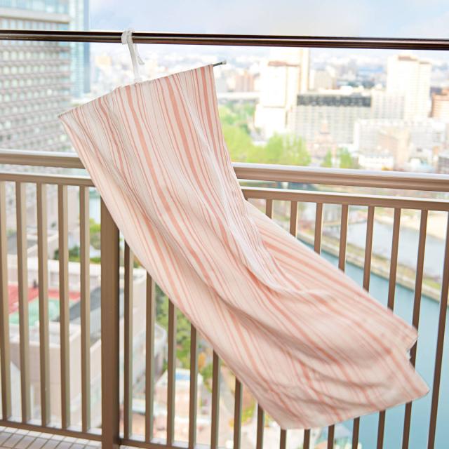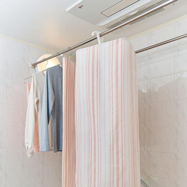 外干しで使用するのはもちろん、室内干しにもおすすめです。どうしても外に干せない雨天時、花粉や黄砂などが気になる時期に、室内の物干し竿やドア枠、鴨居、お風呂場の浴室乾燥で使用できます。