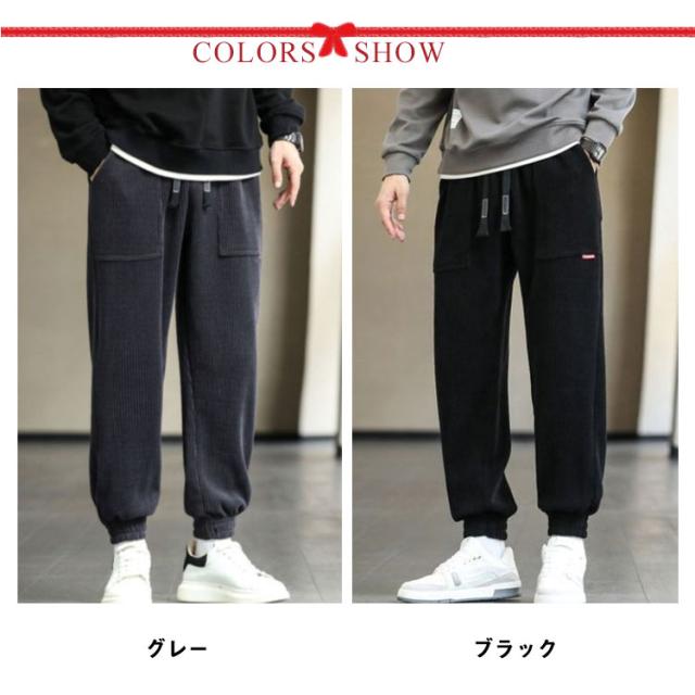 防寒 裏起毛 カジュアル 厚手 冬 サルエルパンツ コーデュロイ スウェットパンツ シンプル ゆったり おしゃれ ジョガーパンツ イージーパンツ ボトムス ズボン 暖かい 大きいサイズ 作業服 ルームウェア メンズ