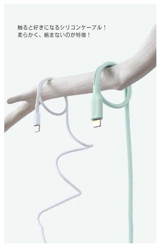 | やわらかくて絡まないシリコンiPhone用充電ケーブル 触ると好きになるシリコンケーブル!柔らかく、絡まないのが特徴! 急速充電対応!銅線を太くし、伝送チャネルを広げることでより高速なデータ転送が実現。 巻いたりまとめたりしても癖がつきにくいため、いつでもスマートにご使用いただけます。 約25000回の折り曲げにも耐える優れた耐久性を実現しているため、ケーブル内部のワイヤーを断線から保護し、安心して充電することができます。 選べる2タイプ、iphone、iPadなどのあらゆるデバイスへ対応しております。 | |