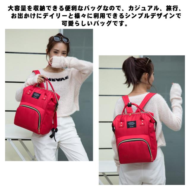 | カジュアル使いにもママバッグにも使える大容量のリュックバッグです! 軽量設計で持ち運びがとても楽ちん!シンプルで大人かわいいレディースデザイン。 外側にポケットがあり、哺乳瓶など別々に収納できるので荷物をしっかり区分けして整理整頓ができます。 ナイロン生地なので、雨の日もサッと拭くだけでお手入れ簡単防水機能!汚れにくい! シルエットはコンパクトですが、長財布、携帯、スマホ、iPhone、iPad mimi、タブレット、ガイドブック、デジカメ、ペットボトルなどをしっかり収納! 大容量を収納できる便利なバッグなので、カジュアル、旅行、お出かけにデイリーと様々に利用できるシンプルデザインで可愛らしいバッグです。 | |