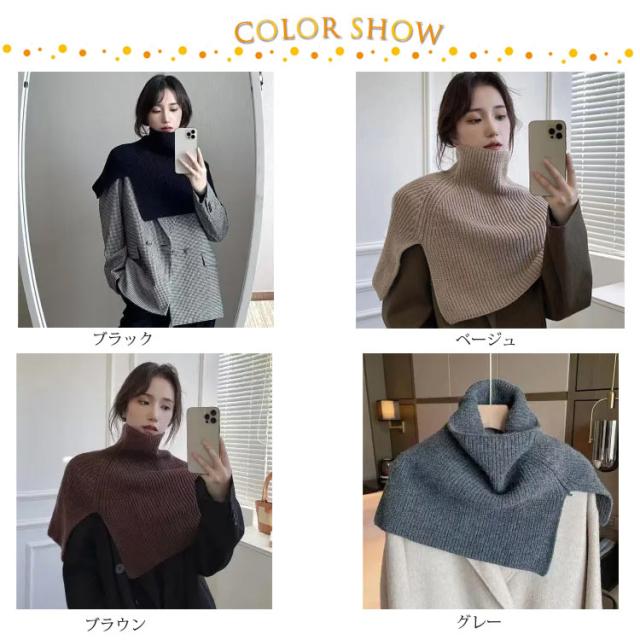 衿 ニット 秋冬 レイヤード 厚手 つけ襟 秋冬 重ね着 マフラー 防寒 保温 肩掛け 送料無料 ネックウォーマー フェイクカラー レイヤードタートルネックニット付け襟 スヌード あぜ編み ポンチョ つけ襟 ケープ