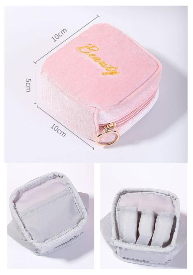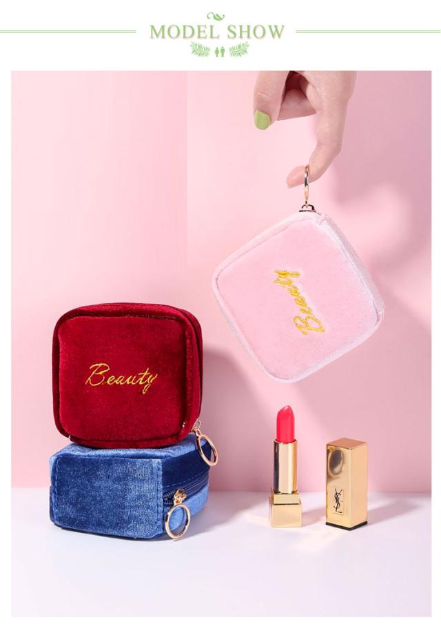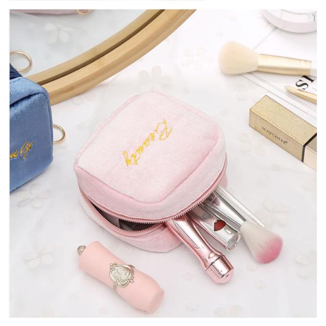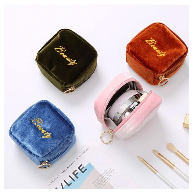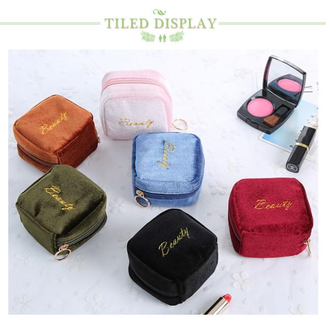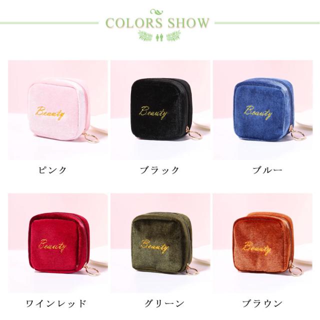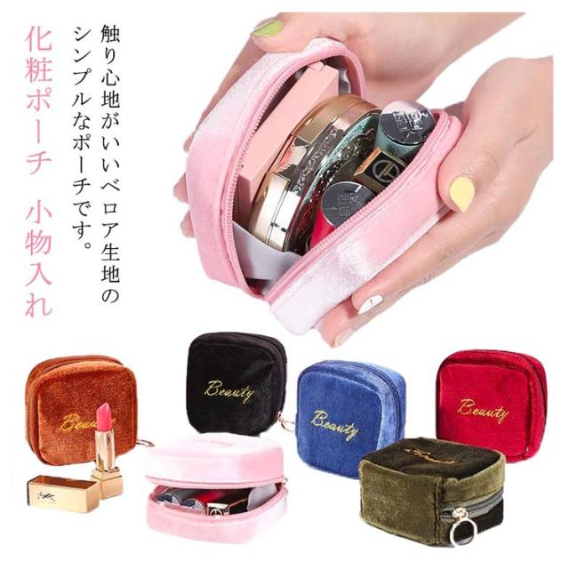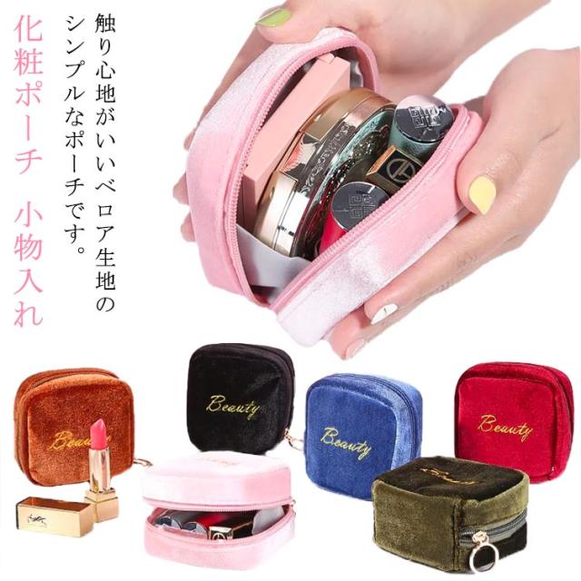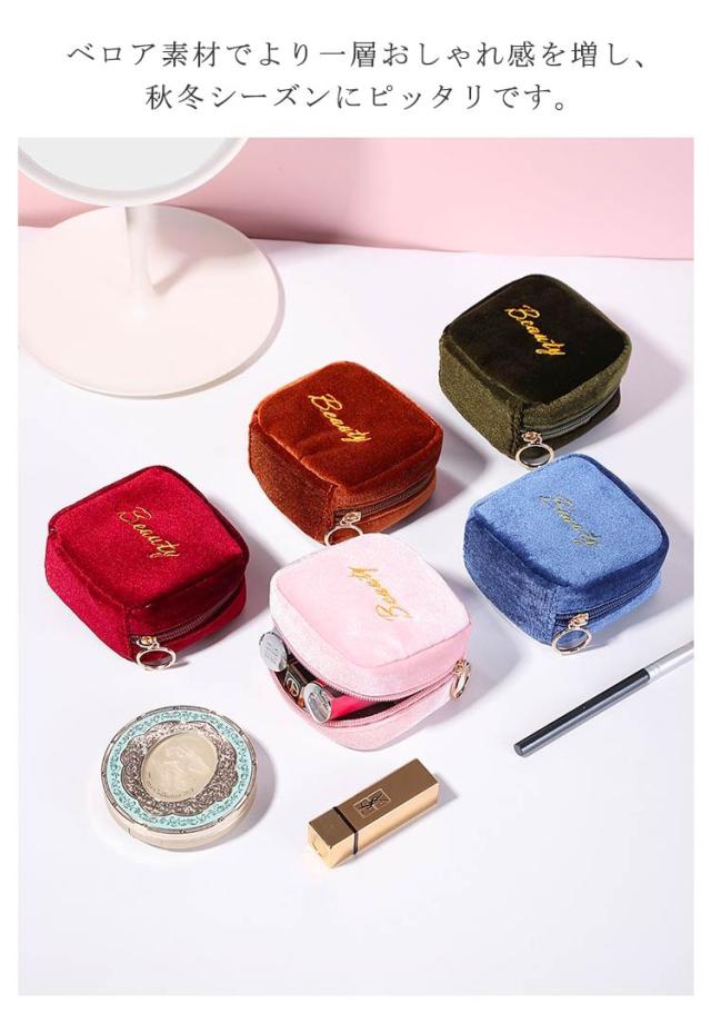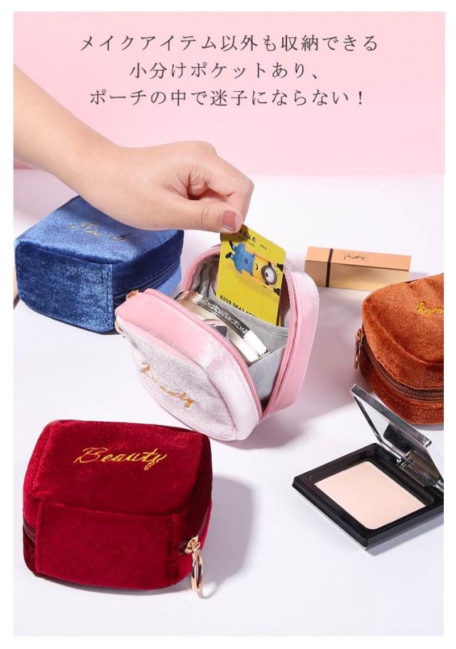小物入れ ミニタイプ 送料無料 機能的 化粧ポーチ マチあり 可愛い メイクポーチ ベロア 小さい トラベルポーチ ポーチ 仕分け コンパクト 送料無料 縦型 スクエア 収納 整理 自立 ファスナー付き 大容量