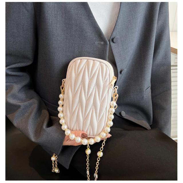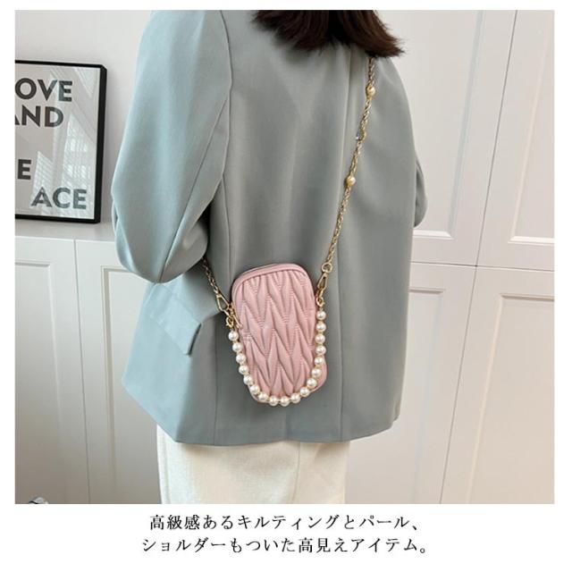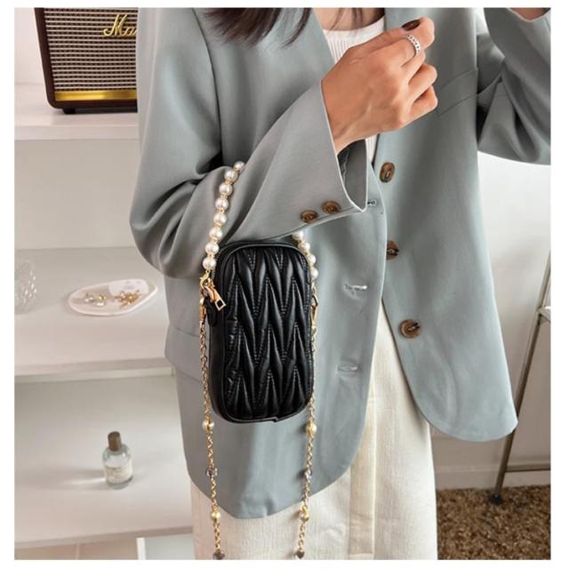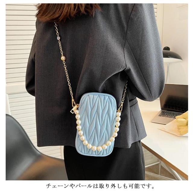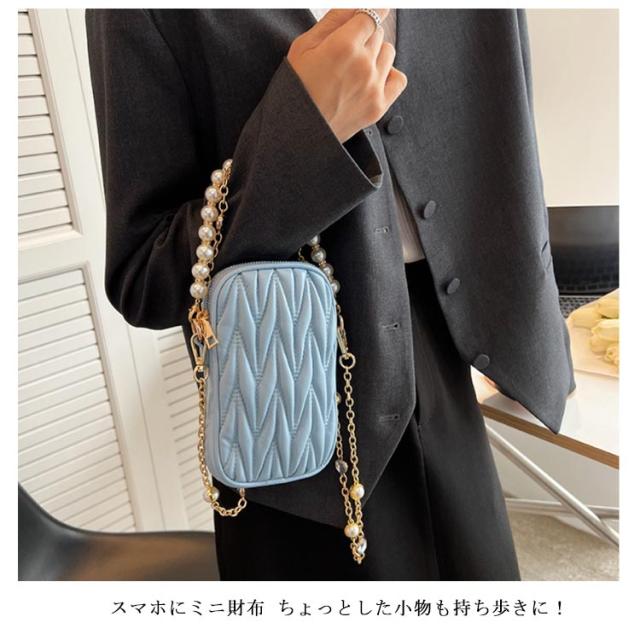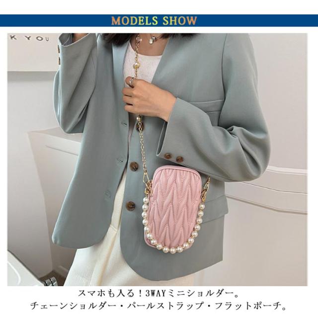 | スマホが入るサイズのショルダーバッグ。 スマホも入る!3WAYミニショルダー。チェーンショルダー・パールストラップ・フラットポーチ。 高級感あるキルティングとパール、ショルダーもついた高見えアイテム。 チェーンやパールは取り外しも可能です。 スマホにミニ財布 ちょっとした小物も持ち歩きに! | |