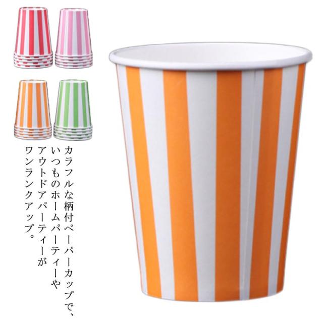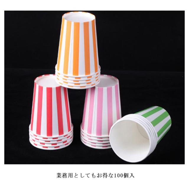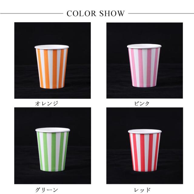 誕生日 安い ドリンク コップ 9オンス 紙コップ 耐熱 厚 ストライプ柄 耐熱紙コップ カラフル お祭り 使い捨て おしゃれ かわいい 業務用 100個セット お得 グリーン レッド ピンク オレンジ パーティー