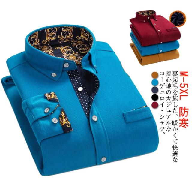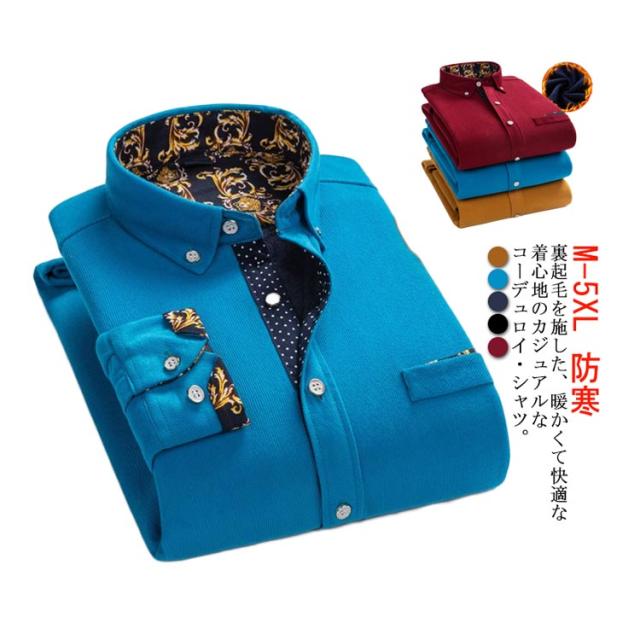 コーデュロイシャツ コーデュロイ 厚手 メンズ シャツ カジュアルシャツ 冬 暖かい オフィス 通勤 防寒 花柄 長袖シャツ ワークシャツ フィット 保温 4XL シンプル レギュラー 無地 秋 裏起毛 M L XL 2XL 3XL 長袖