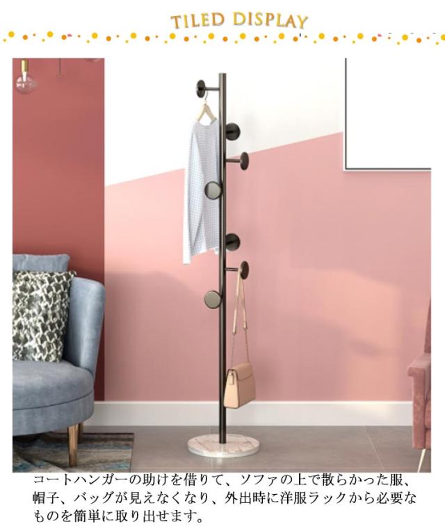 ブラック 大理石 かばん 収納 ハンガーラック 北欧 おしゃれ コートハンガー バッグ スチール 洋服 コート アウター 上着 ポールハンガー 片付け 帽子掛け 玄関収納 リビング 大人 ゴールド スリム