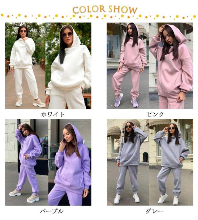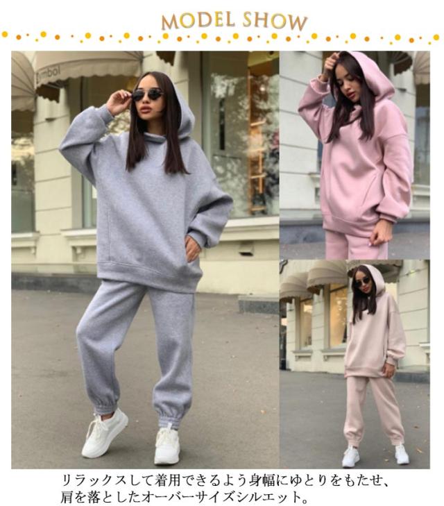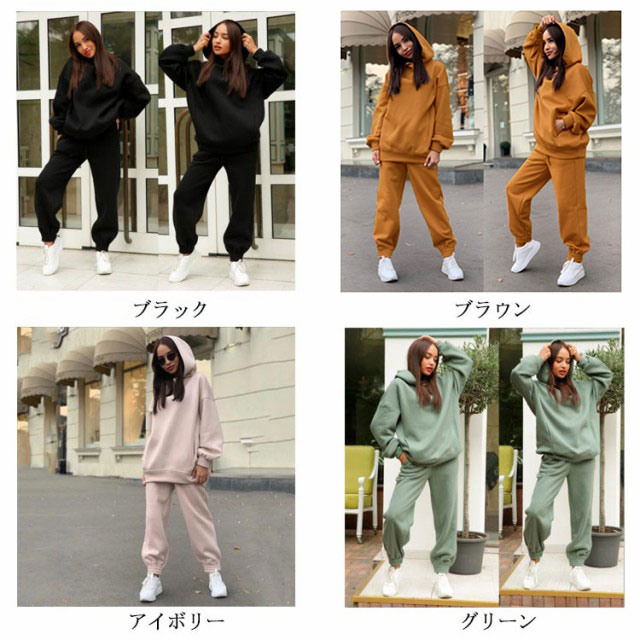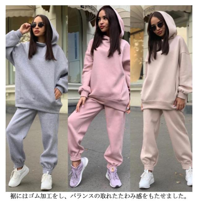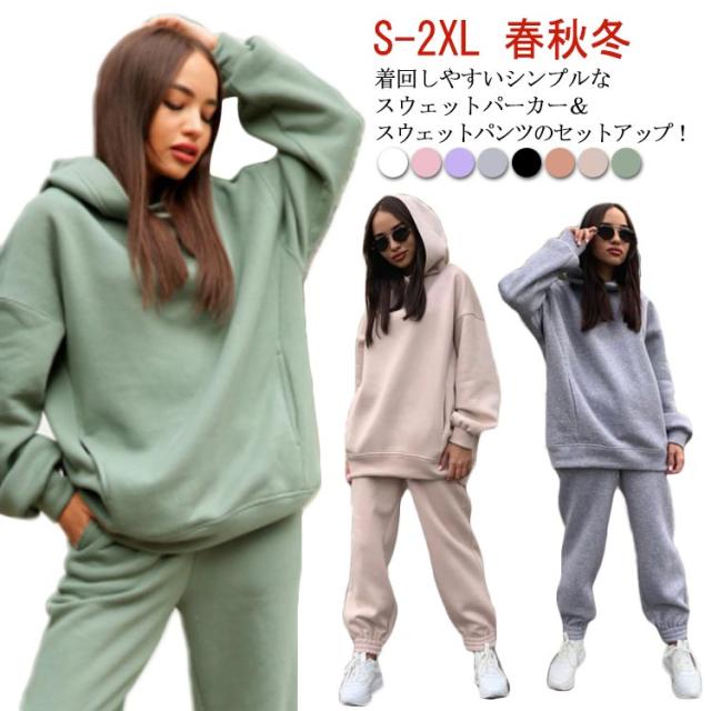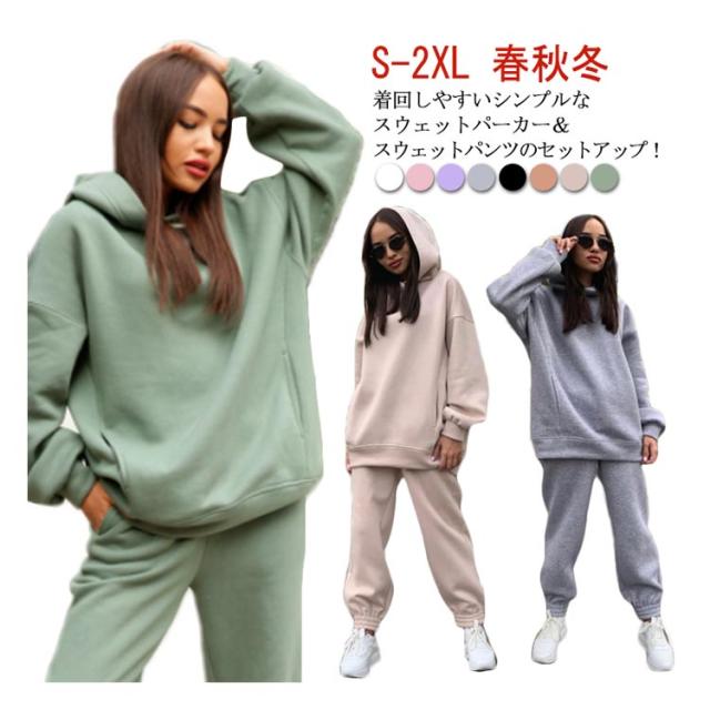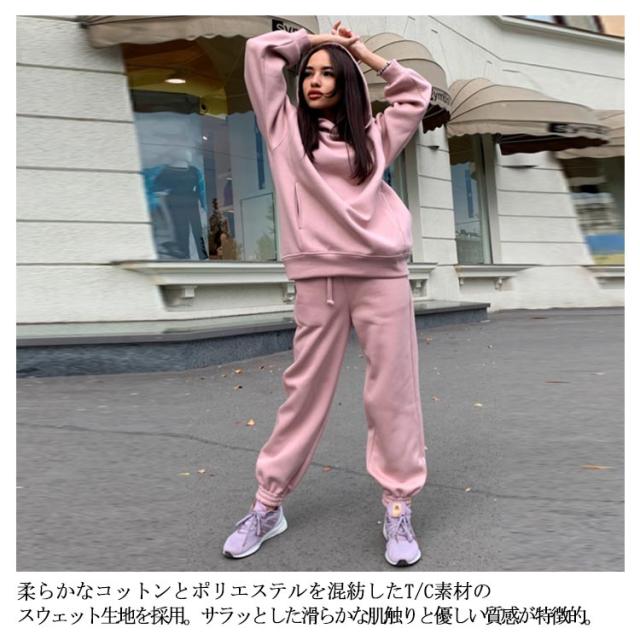 【送料無料】セットアップ フーディー スウェットパンツ プルオーバー ジョガーパンツ スウェットパーカー パーカー レディース パーカー スウェット 冬 長ズボン 春 秋 無地 ルームウェア 部屋着 フード付き