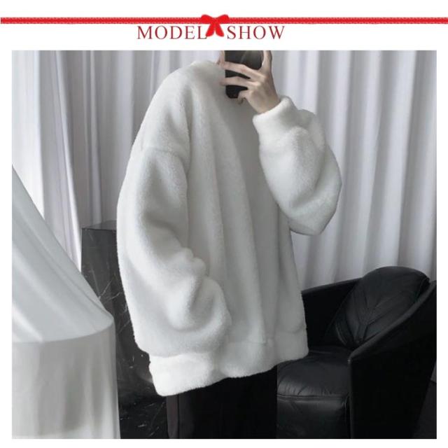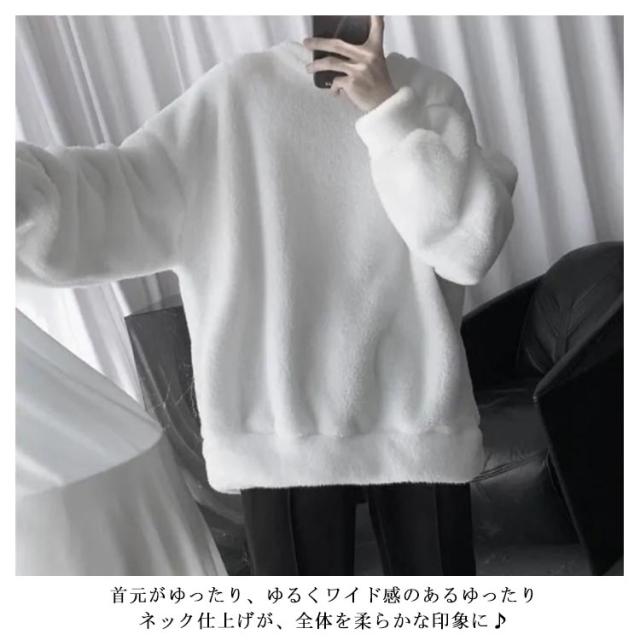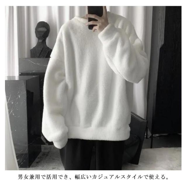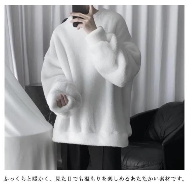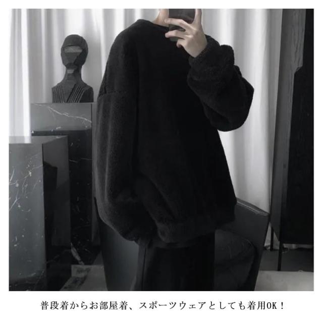 ボア ゆったり 暖かい トップス モコモコ 秋冬 フリース ふわふわ 保温 防寒 クルーネック メンズ 秋 プルオーバー 男女兼用 無地 ルームウェア アウトドア トレーナー 冬 服 保温 長袖 厚手