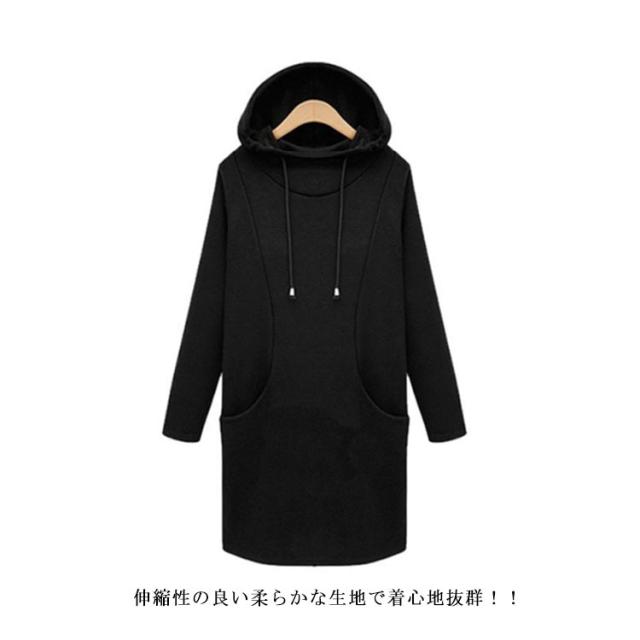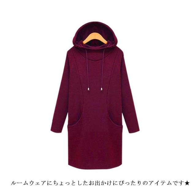 裏起毛 プルオーバーパーカー パーカーワンピ レディース オーバーサイズ ロングパーカー シンプル 大きいサイズ フード付き 長袖 あったか ロング丈 ルームウェア 秋 冬 秋冬 防寒 部屋着 ワンマイル パーカー