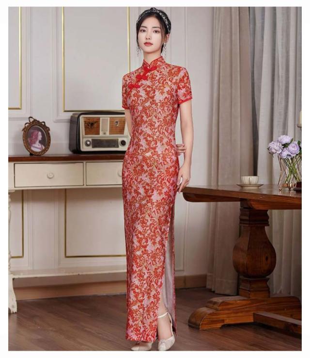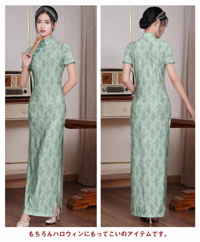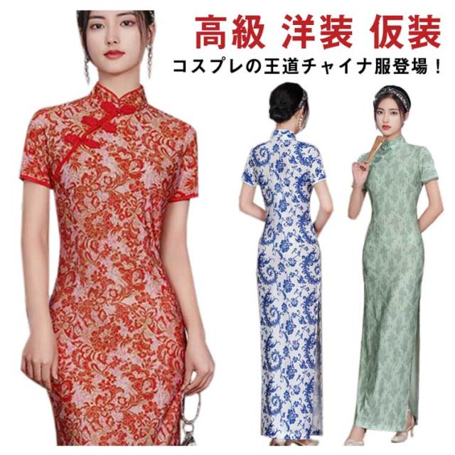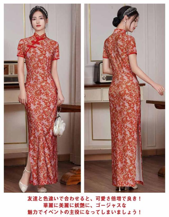 洋装 発表会 チャイナドレス ロング丈 パーディードレス 大きいサイズ ワンピース ワンピース マキシ丈 ドレス 半袖 結婚式 二次会 エレガント 高級 チャイナドレス コスプレ ハロウィン 仮装 コスチューム ブラック レッド 演奏会