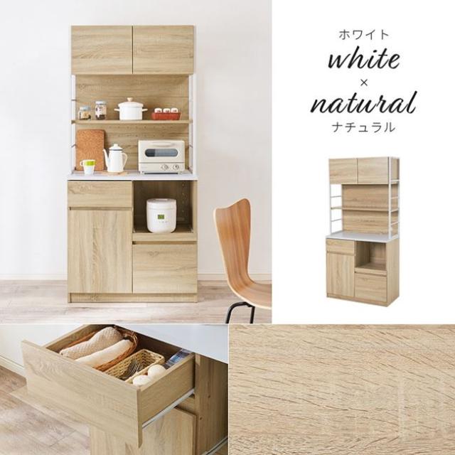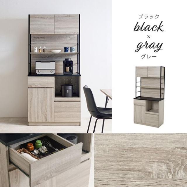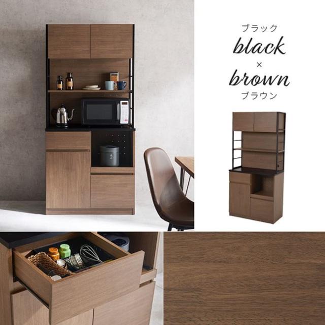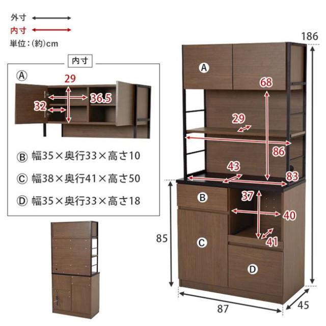 食器棚 レンジ台 キッチンラック 幅87cm おしゃれ アイアン ヴィンテージ 木目調シート 大容量収納棚