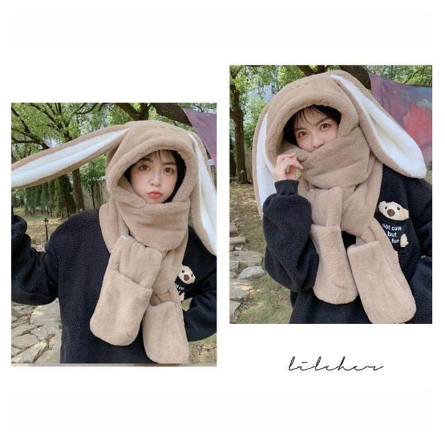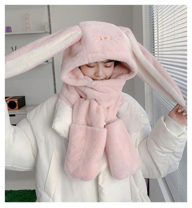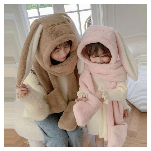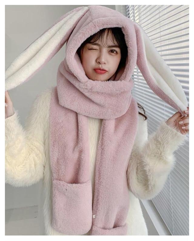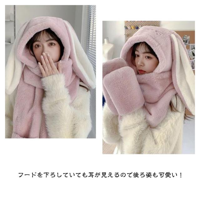 送料無料 ボア帽子 うさぎ 帽子 耳付き 一体型 マフラーと帽子一体式 うさぎ耳 もこもこ うさぎの耳 レディース ウサギ帽子 帽子 ネックウォーマー ふわふわ 被り物 マフラー 女の子 手袋 大人 あったか 秋冬 キャップ マフラーフード付きマフラー