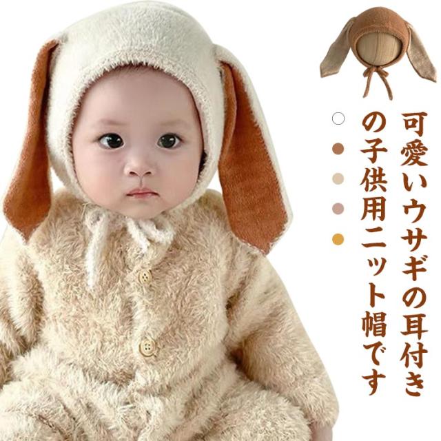 送料無料 ボア帽子 ニット帽 ボア ベビー ベビー帽子 キッズ 耳付き 赤ちゃん 可愛い ニットキャップ うさぎ 男の子 うさ耳 子供用 かわいい 女の子 あたたかい あったか 秋冬 記念撮影 出産祝い ギフト ウサギ帽子 ウサギ