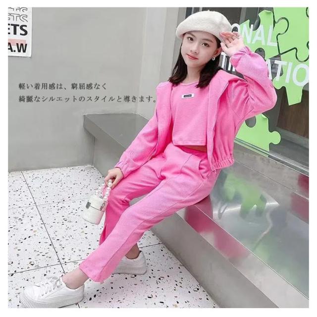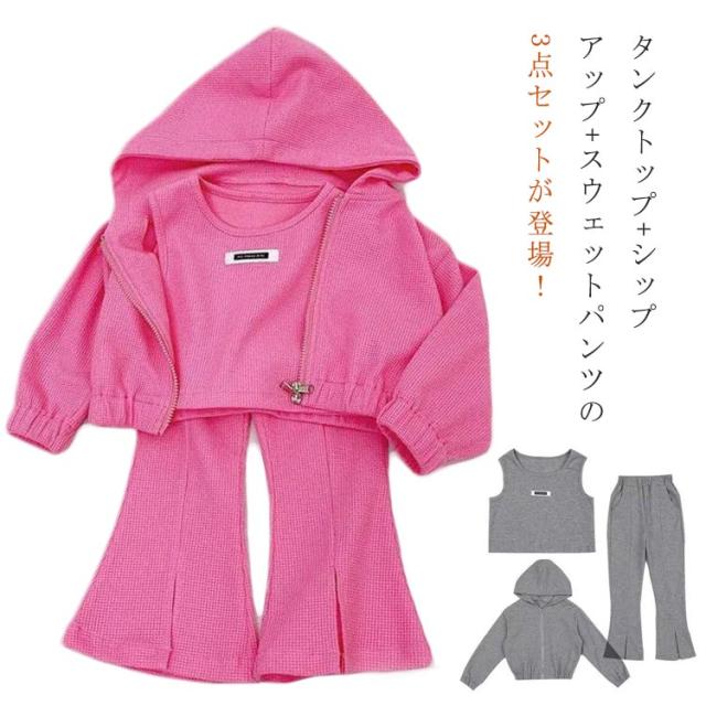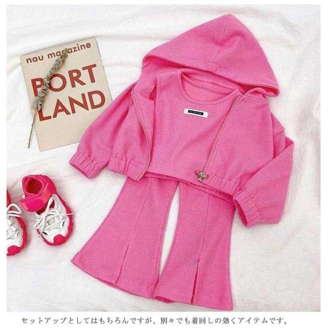 子供ジャージ 可愛い キッズ 女の子 上下セット 女の子 パーカー カジュアルパンツセット おしゃれ 長袖 フード付き 3点セット ベルボトム ロングパンツ パーカー スポーツウェア トレーナー セットアップ 韓国子供服 ダンス衣装 100cm 110cm 120cm 130cm 140cm 春秋