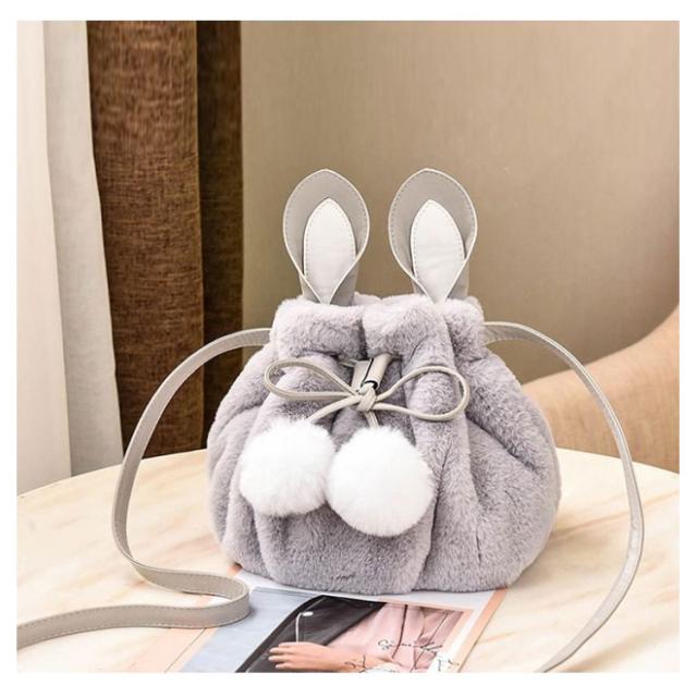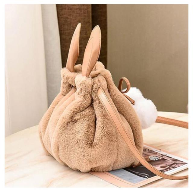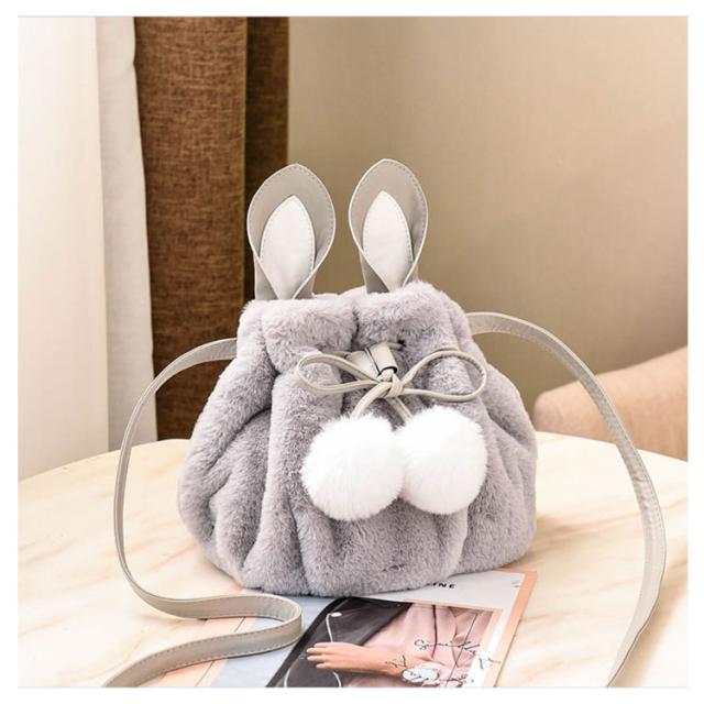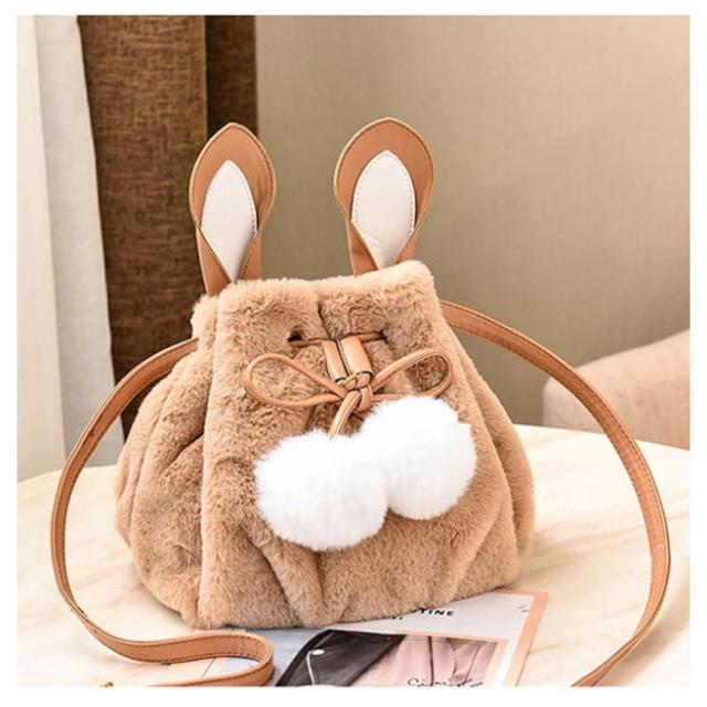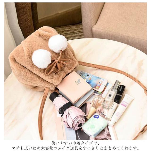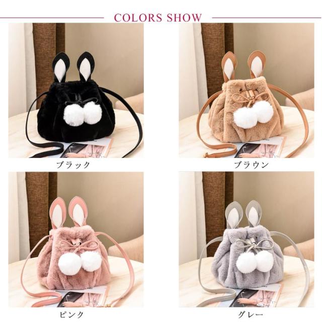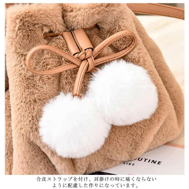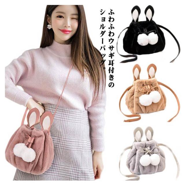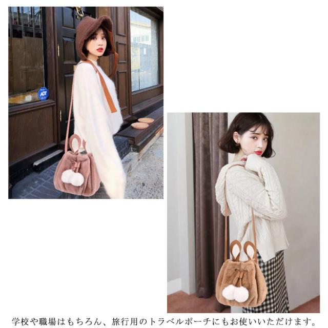 ポーチ 斜めがけ おしゃれ 巾着バッグ 通学 ショルダーバッグ ふわふわ レディース 巾着 肩掛け オフィス フェイクファー ウサギ耳 もこもこ 鞄 バッグ ポンポン付 旅行 通勤 お出かけ かばん お洒落 大人 可愛い 軽い OL お出かけ オフィス ファーバッグ