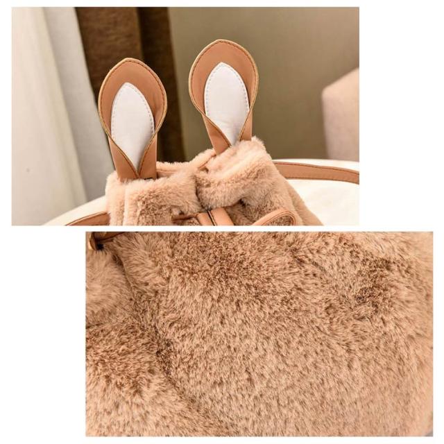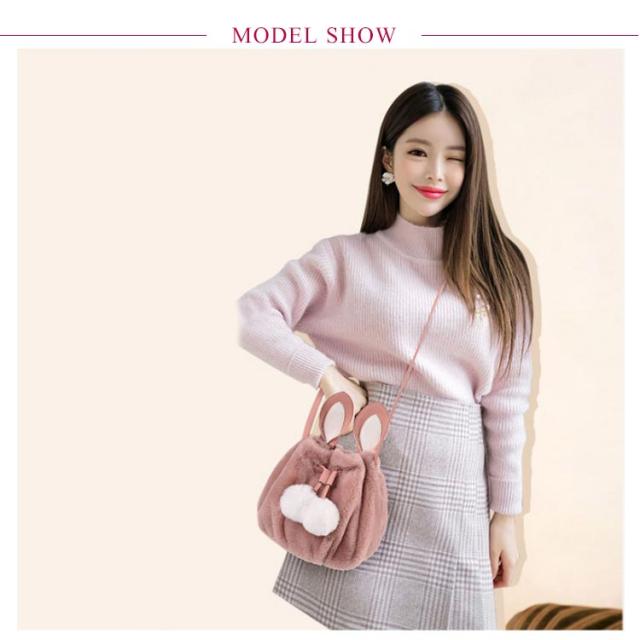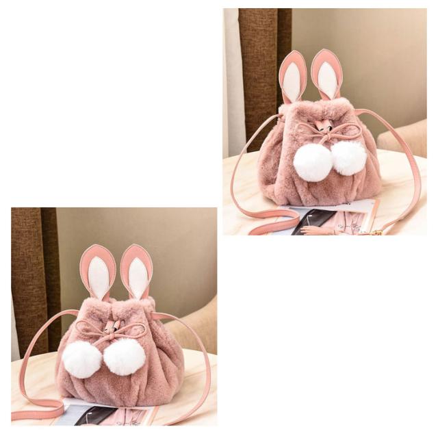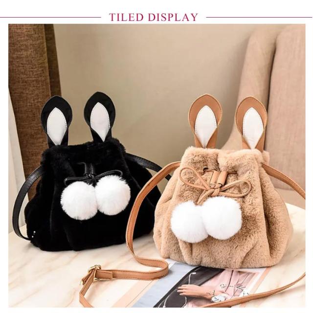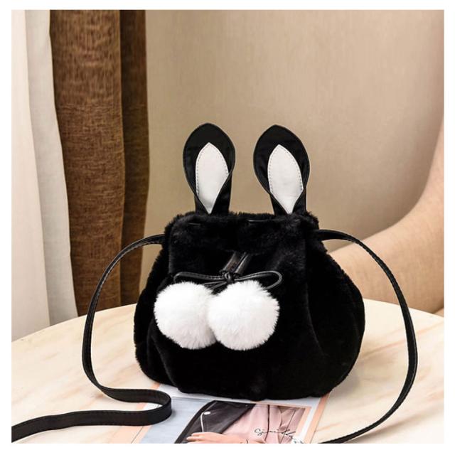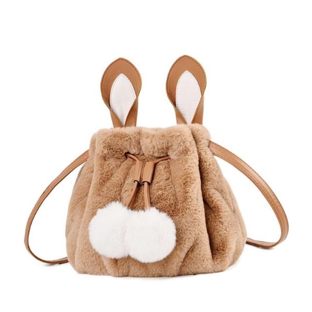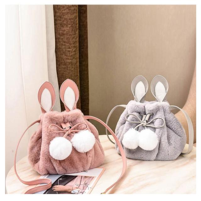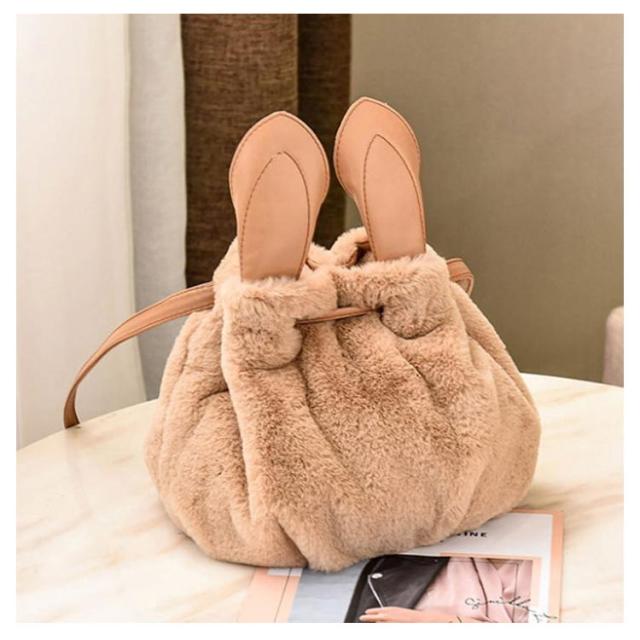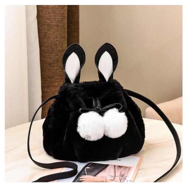 ポーチ 斜めがけ おしゃれ 巾着バッグ 通学 ショルダーバッグ ふわふわ レディース 巾着 肩掛け オフィス フェイクファー ウサギ耳 もこもこ 鞄 バッグ ポンポン付 旅行 通勤 お出かけ かばん お洒落 大人 可愛い 軽い OL お出かけ オフィス ファーバッグ