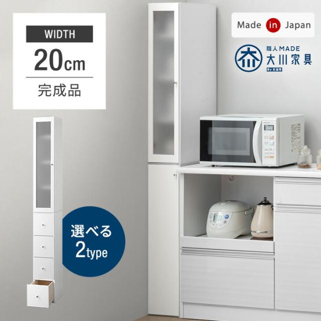 隙間収納 幅20cm 選べる2タイプ! 国産 完成品 大川家具 食器棚 スリム 省スペース キッチン収納 日本製 収納 収納棚 すきま収納 すき間収納 スリムラック ラック チェスト 棚 キッチン リビング 洗面所 脱衣所 シンプル 北欧 おしゃれ ホワイト 白