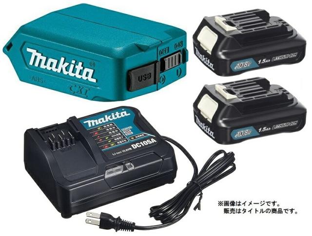 マキタ USB用アダプタ ADP08+バッテリBL1015x2個+充電器DC10SA付 10.8Vスライドバッテリ対応 makita オリジナルセット品