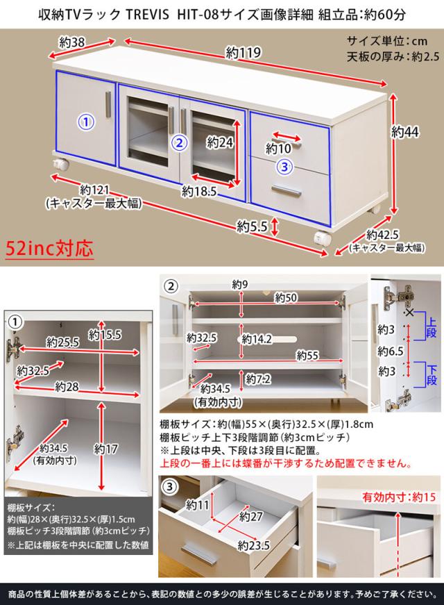 ◆52インチまでのテレビ対応 収納TVラック(キャスター付き)◆