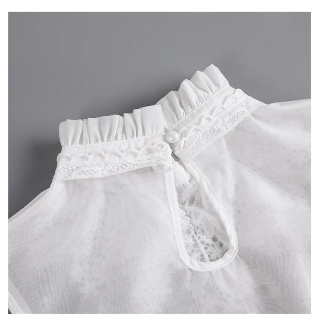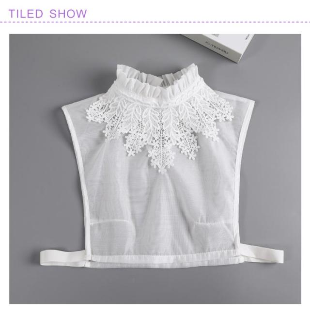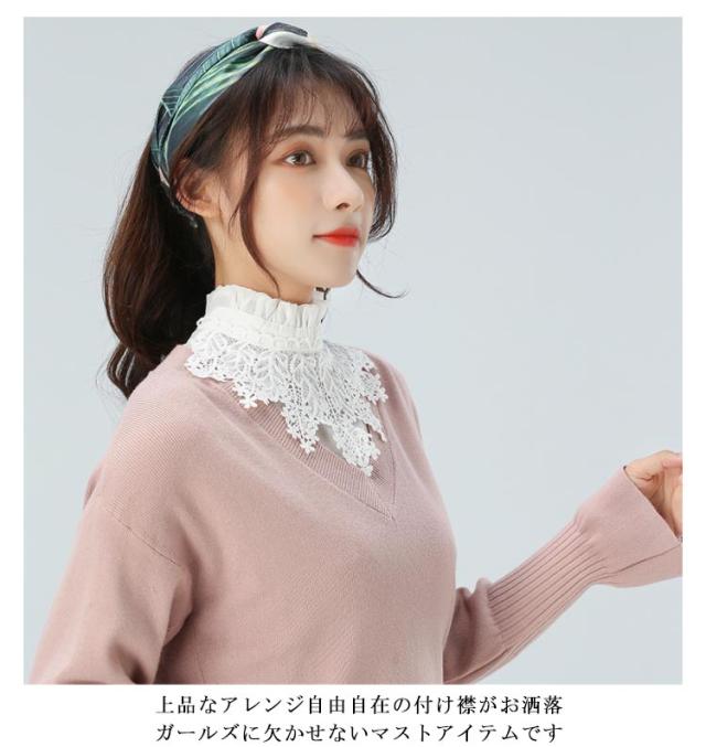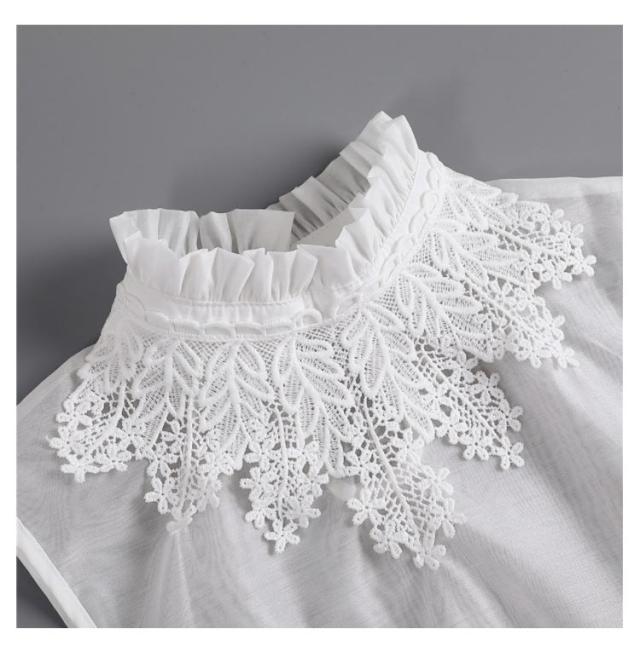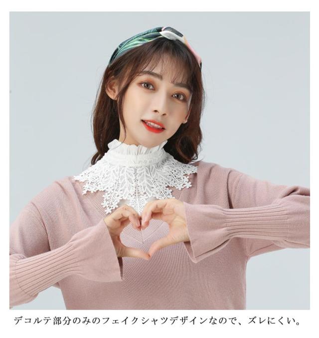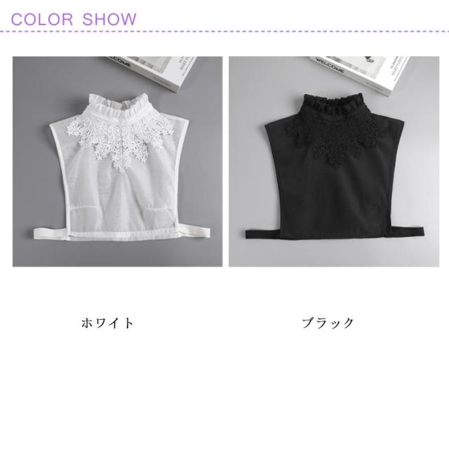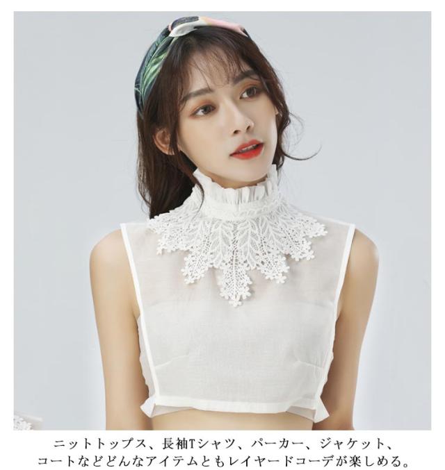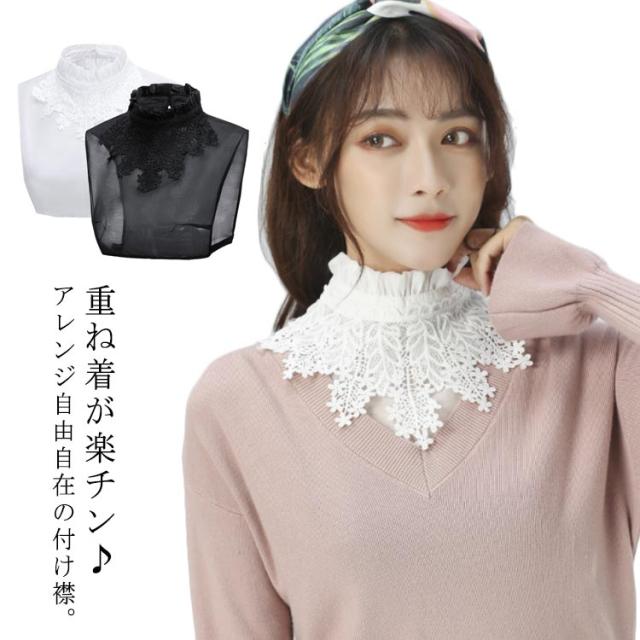 フリル つけ襟 黒 花柄レース フリルネック ふんわり 重ね着風 レース レディース ズレにくい 調節可能 シャツ レイヤード スタンドカラー エレガント フォーマル カジュアル 可愛い 甘め お姫系 立ち襟 白 シャツ襟