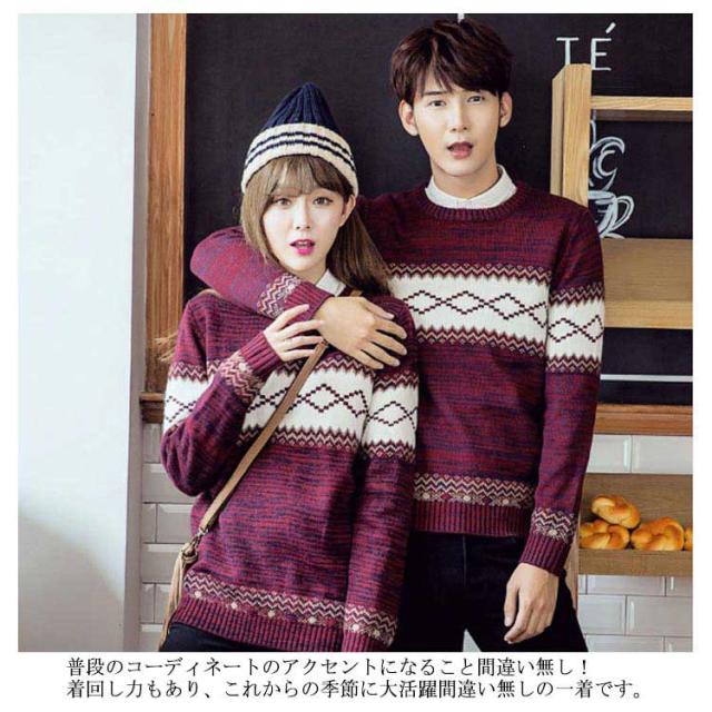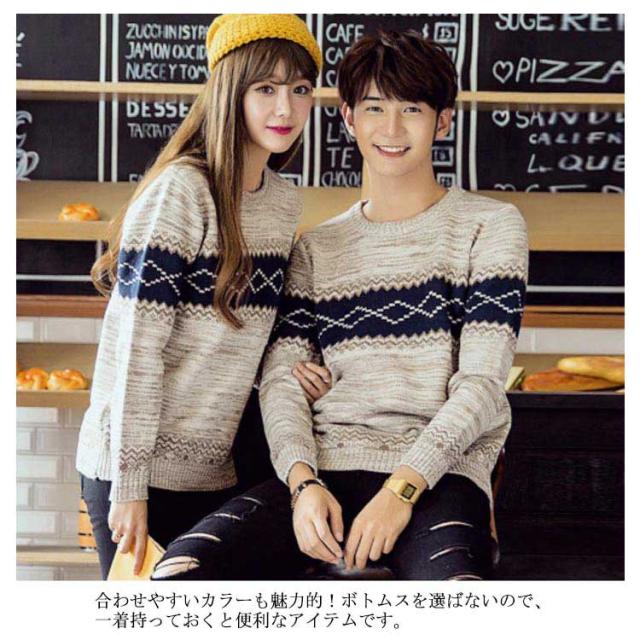 セーター ニットトップス ニット 裏起毛あり 長袖 ノルディック柄 ニット カジュアル オシャレ ニットセーター 柄物 暖かい 保温 メンズ 幾何柄 秋冬 厚手 ユニセックス 男女兼用 ペアルック カップル あったか 裏起毛なし M L XL 防寒