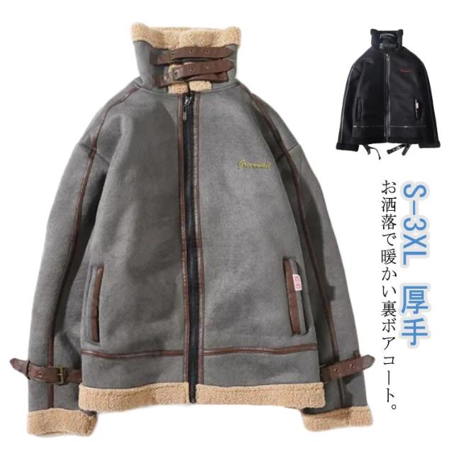 ムートンジャケット ジャケット スタンドカラー 厚手 裏ボア ブルゾン ボアジャケット フェイクレザー レザー ライダースジャケット ショート丈 裏起毛 防寒 メンズ メンズアウター 冬服 秋冬 2XL カジュアル 保温 S M L XL フェイクムートン