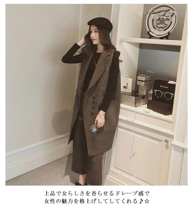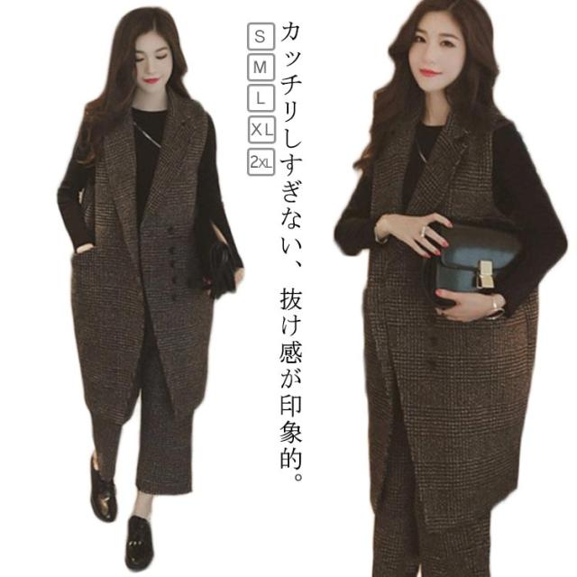 秋冬 ロングジレ 秋冬 ジレ レディース ジャケット 送料無料 ベスト パンツ ロングベスト ワイドパンツ コート 大きいサイズ セットアップ 通勤 パンツドレス 2点セット 卒業式 入学式 おしゃれ 結婚式 フォーマル フォーマル 厚手 パンツスーツ