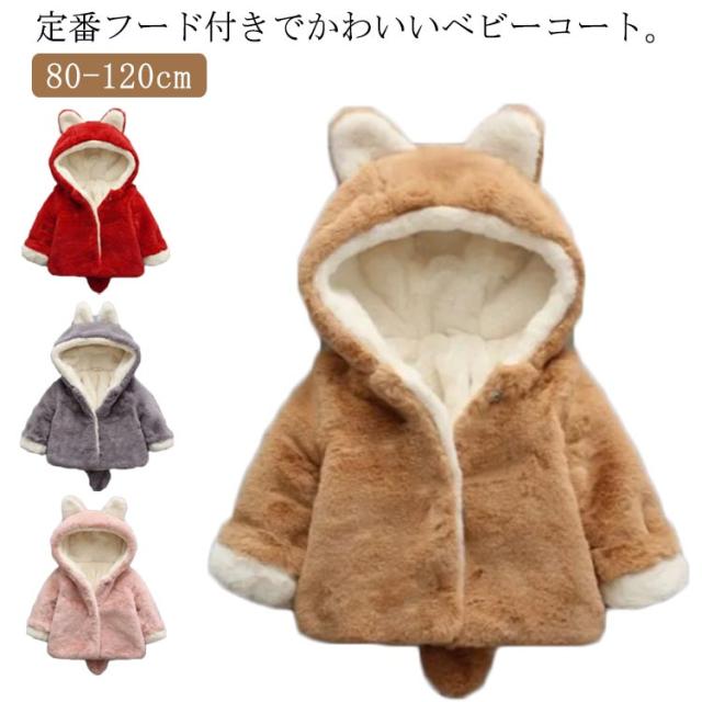 耳フード付き 通学 ボアコート フード付き 女の子 赤ちゃん ベビーコート 男の子 コート ベビー アウター 通園 防寒 ベビーコート 秋冬 冬服 冬物 ボア 可愛い 80 90 100 110 しっぽ付き