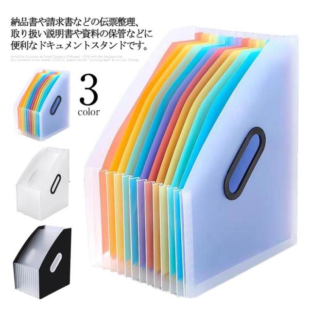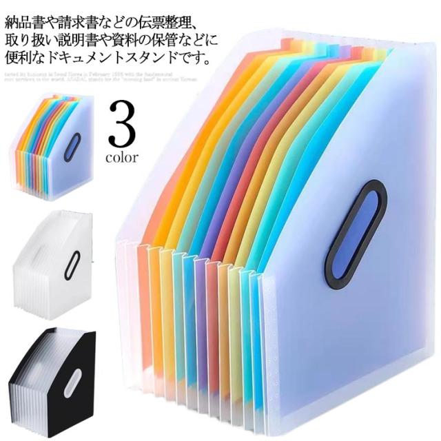 ドキュメントスタンド A4 伝票 ファイル タテ型 スタンド レインボー 13ポケット ファイルケース 領収書 アコーディオン式 整理 自立 仕切り 書類 セキセイ クリアファイルが入る 収納 書類整理 学校 プリント アドワン
