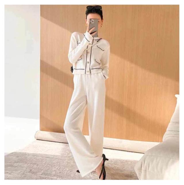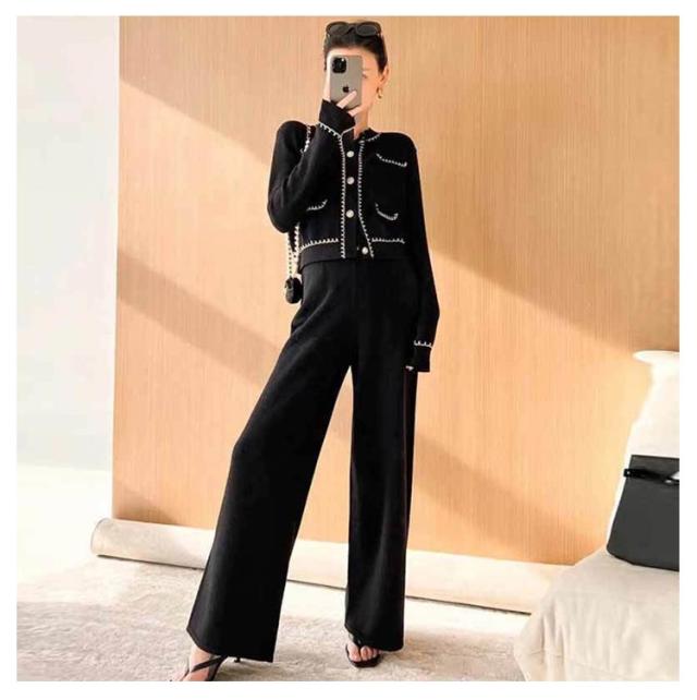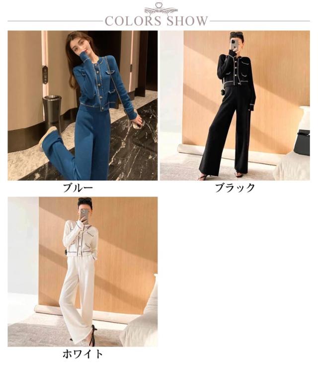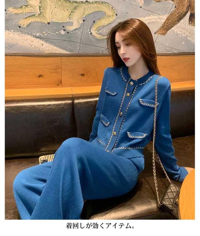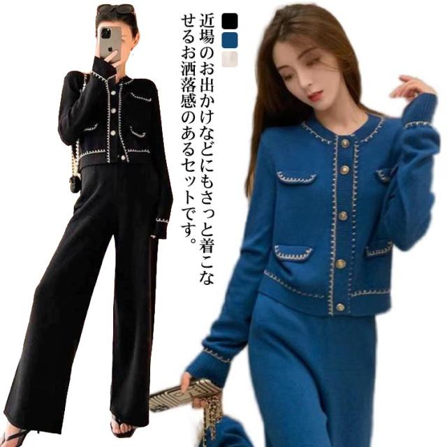 送料無料 レディース 秋 春 ワイドパンツ 2点セット パンツスーツ 発表会 送料無料 カットソー セットアップ セーター ニット パンツ セットアップ トップス&パンツ カジュアルスーツ 入学式 長袖 おしゃれ エレガント お出かけ ニットセット