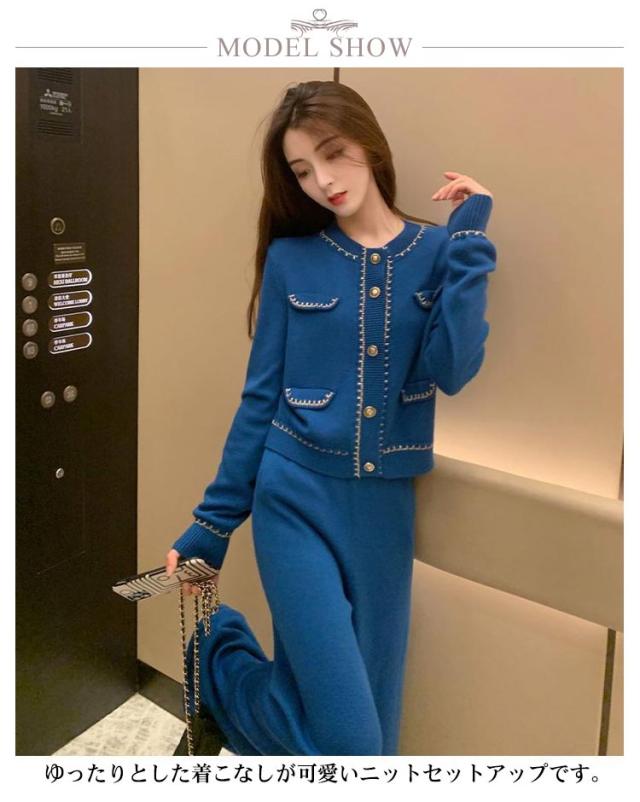 | 近場のお出かけなどにもさっと着こなせるお洒落感のあるセットです。 ゆったりとした着こなしが可愛いニットセットアップです。 着回しが効くアイテム 上下単体でもセットでも使えて1セットでコーディネートの幅が広がります。 お洒落セットアップ | |