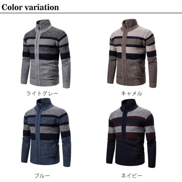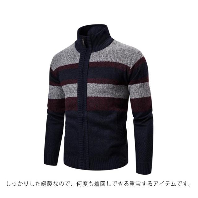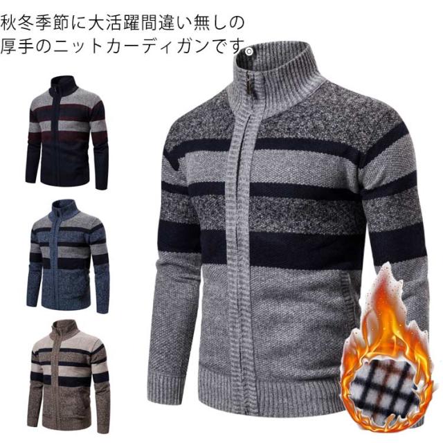 ニットカーディガン ジップアップ 長袖 アウター カーディガン 羽織り 春秋冬 裏地付き 厚手 防寒 カーディガン 男性用 大きいサイズ 暖かい カジュアル メンズ