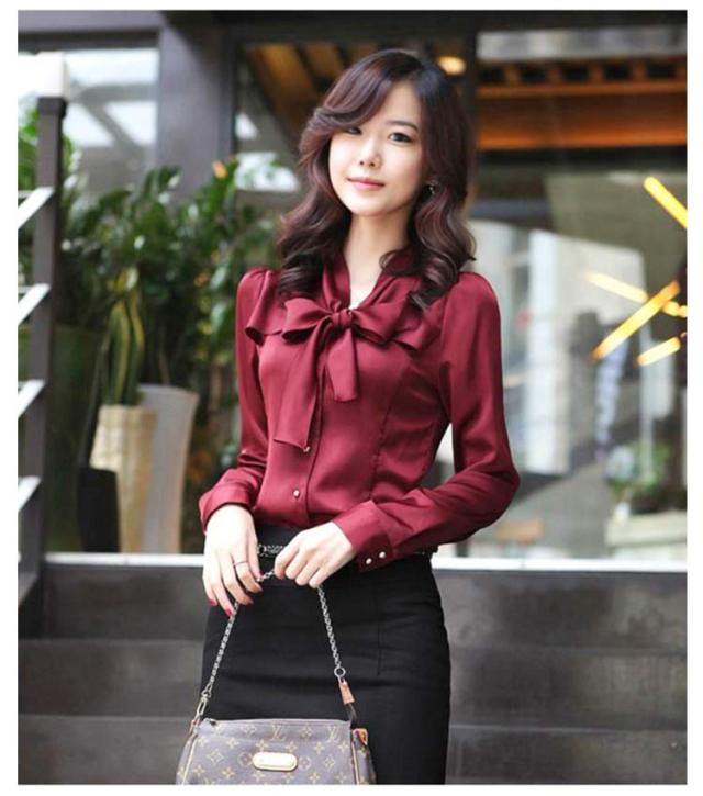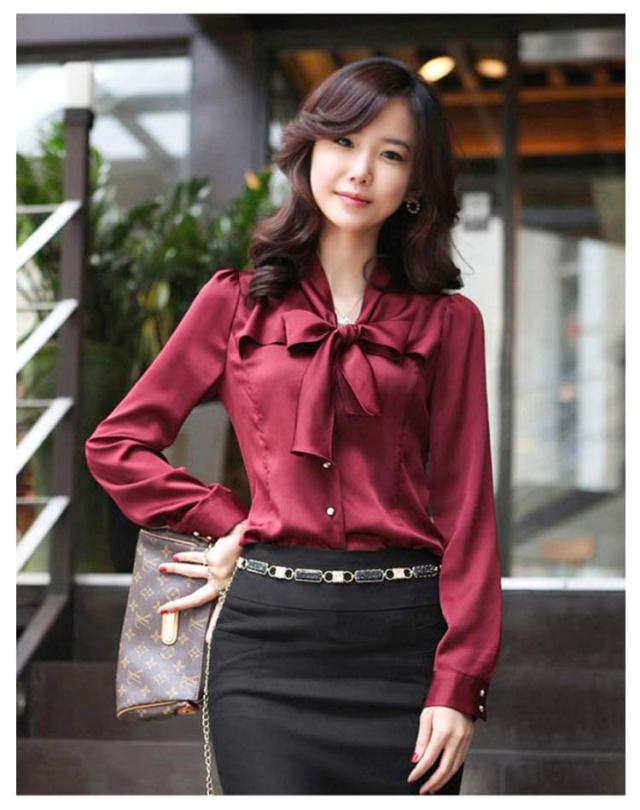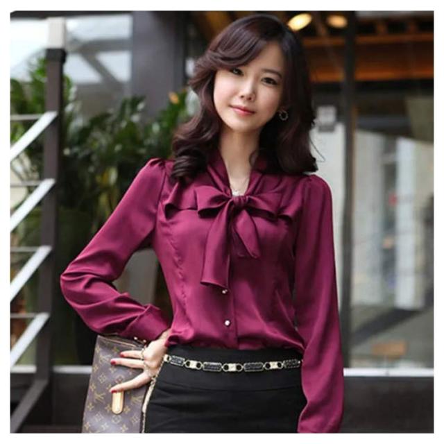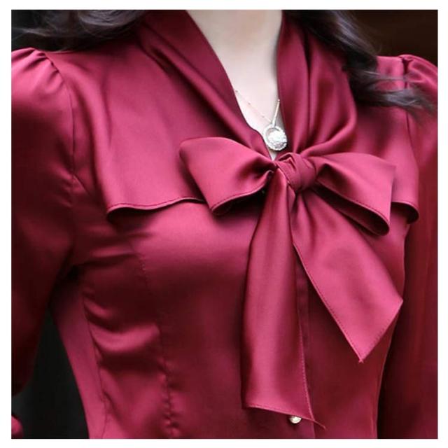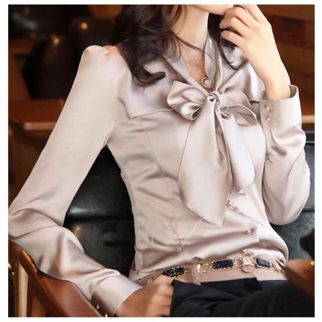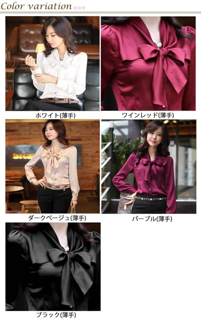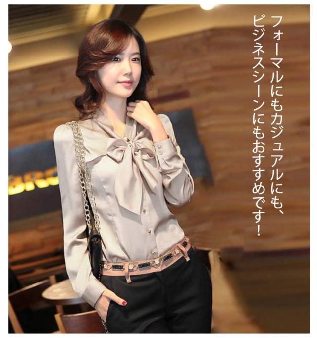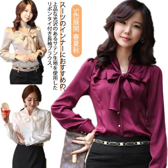 ブラウス 長袖 通勤 スリム 5色展開 サテンタッチ フォーマル レディース 光沢感 春夏秋 きれいめ 無地 ふんわり シャツ おしゃれ リボンタイ オフィス スーツインナー ボウタイ