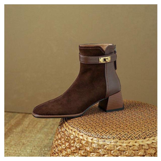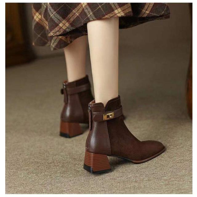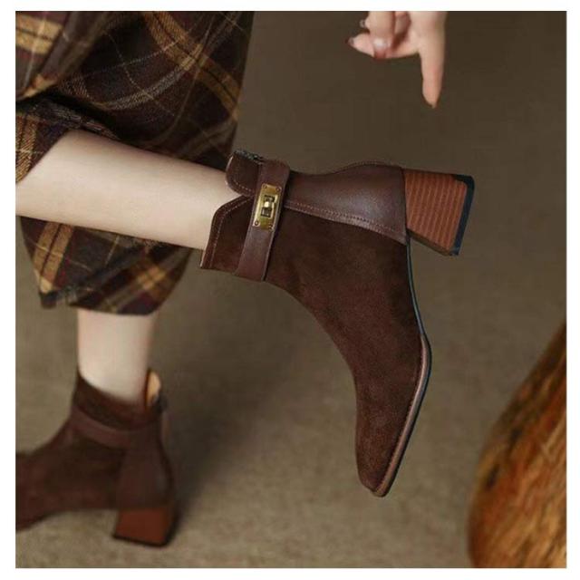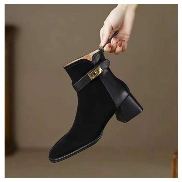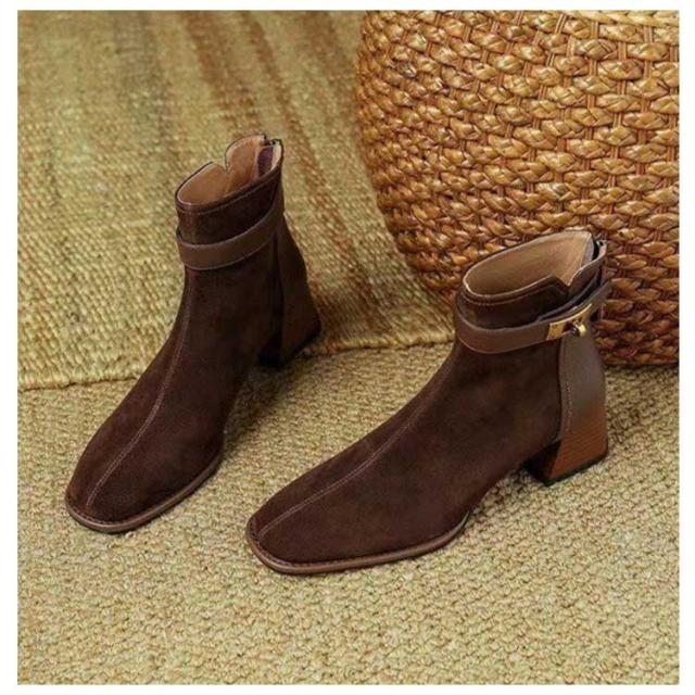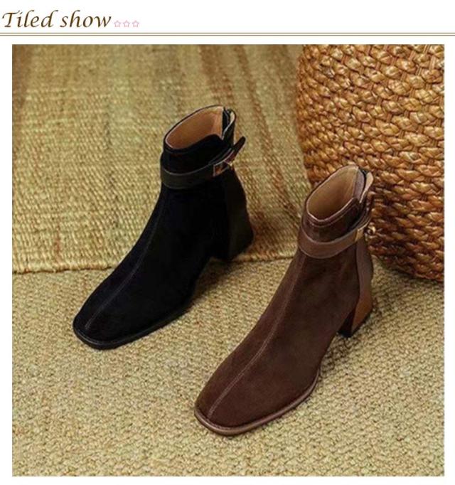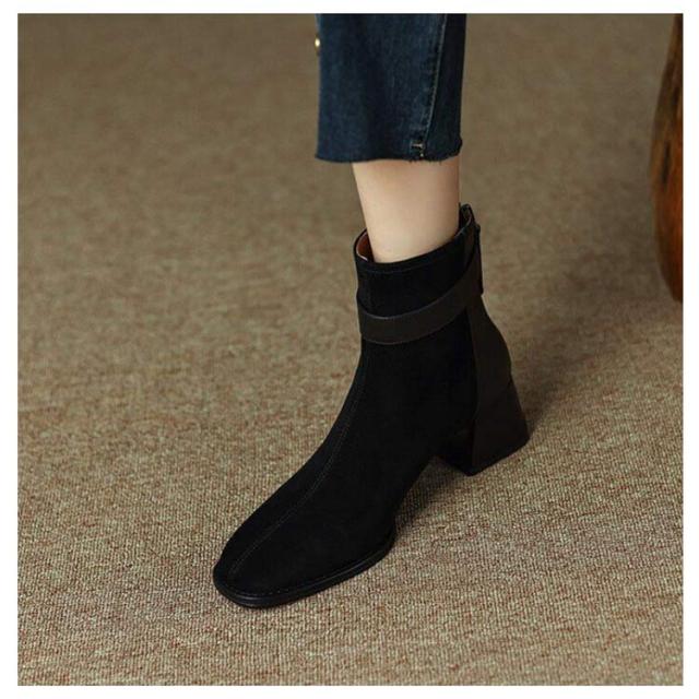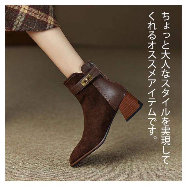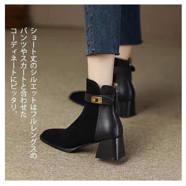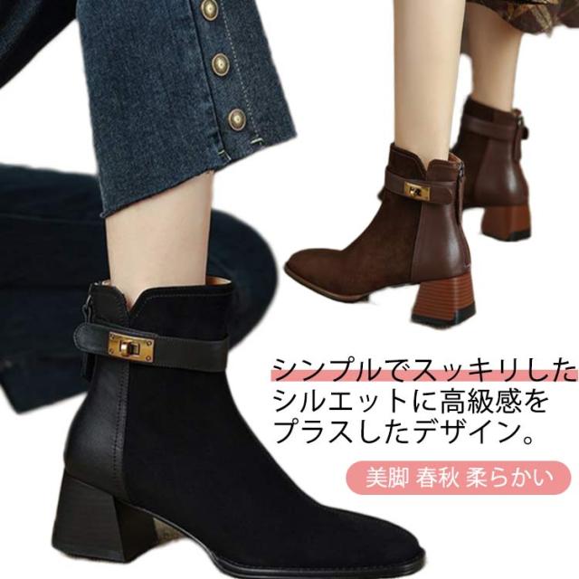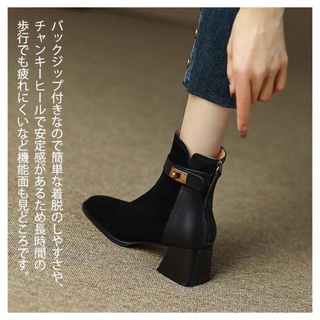 シューズ レディース 靴 通勤 美脚 太ヒール 歩きやすい ショートブーツ 春秋 ストレッチブーツ スクエアトゥ バックジップ 痛くない 履きやすい 柔らかい 滑り止め ブーツ