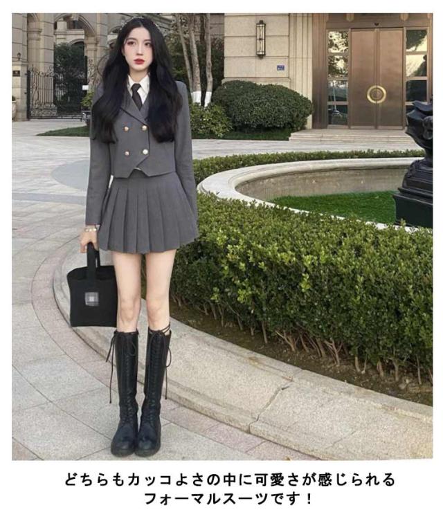 | ジャケット・ブラウス・スカート・ネクタイの4点セットです。 どちらもカッコよさの中に可愛さが感じられるフォーマルスーツです! シックでカッコいい印象のブレザー 生地はさらりとしていて軽い着心地。 着丈は短めに作られており足長効果も得られます。 スカートのラインが美しいのも魅力の一つです。 | |