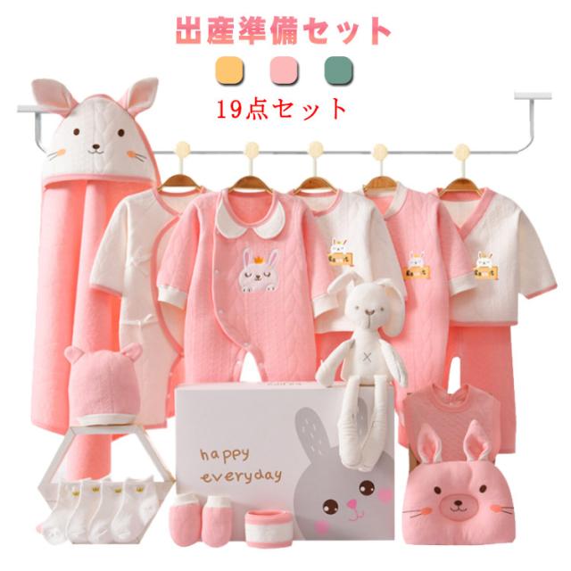 ベビー服 女の子 出産準備セット ロンパース ぬいぐるみ 上下セット よだれかけ 帽子 手袋 ソックス 男の子 おくるみ 枕 ウサギ柄 干支 おしゃれ ウサギ年 新生児肌着 19点セット 初産 セット 赤ちゃん 通年 ギフト かわいい 退院着 お宮参り 出産祝い 長袖