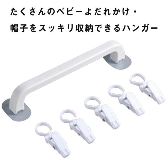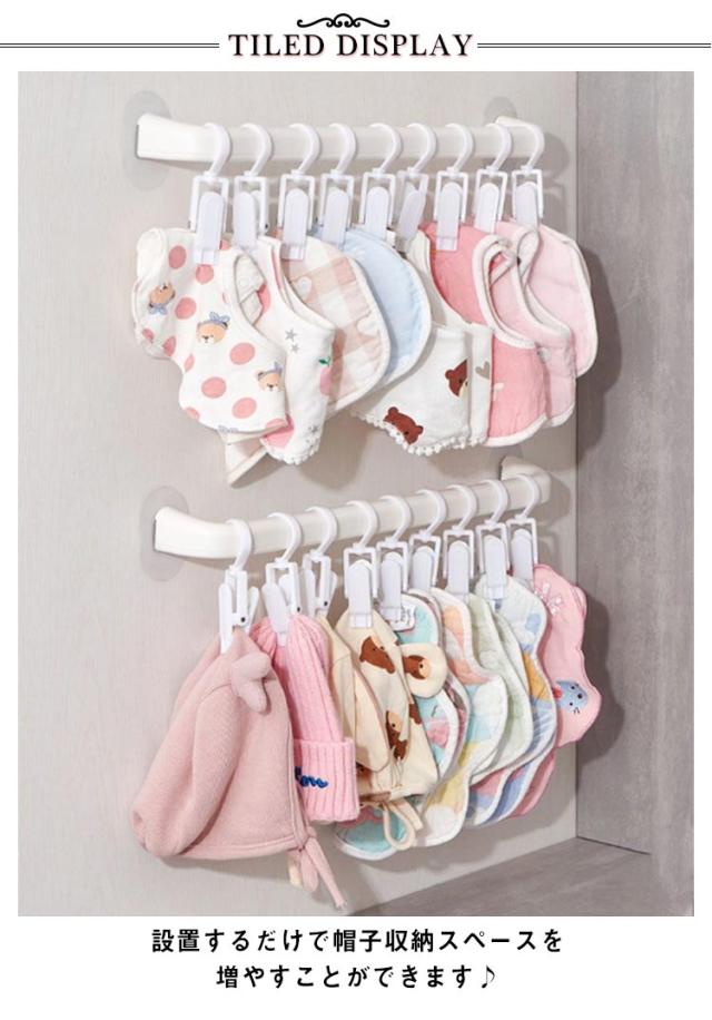| たくさんのベビーよだれかけ・帽子をスッキリ収納できるハンガー 設置するだけで帽子収納スペースを増やすことができます♪ ベビーの帽子やよだれかけをスッキリ収納して使いたい時には一目瞭然。 子供用品だけでなくタオルハンガー、帽子やストールなど小物を見せる収納にも。 PP素材を採用するので、錆びる錆びる心配がなく長くご愛用いただけます。 シンプルなデザインはクローゼットや部屋にすっきりと馴染みます。 | |