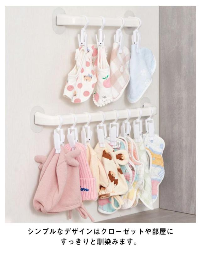 錆びない よだれかけ収納 クローゼット収納 帽子収納 プラスチック 北欧 タオル掛け 棒 フック タオルハンガー L 丈夫 収納 壁掛け 取付簡単 帽子掛け 壁面収納 軽量 省スペース 子供部屋 寝室 掛けて収納 S ピンチハンガー