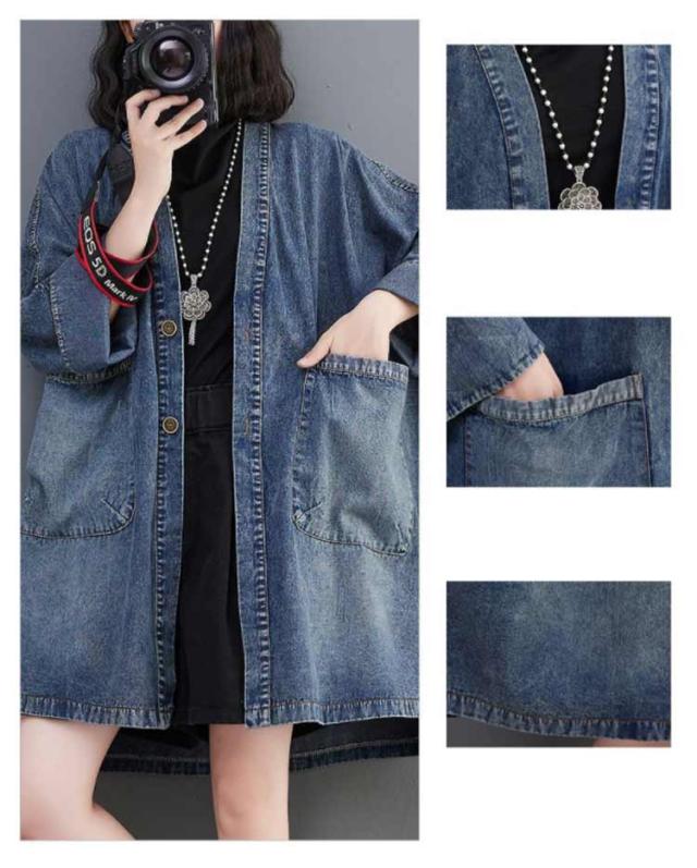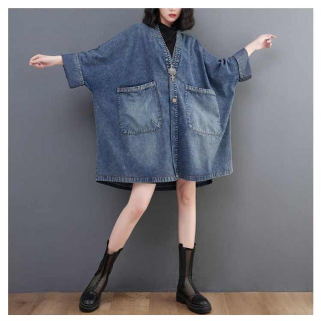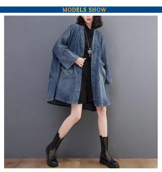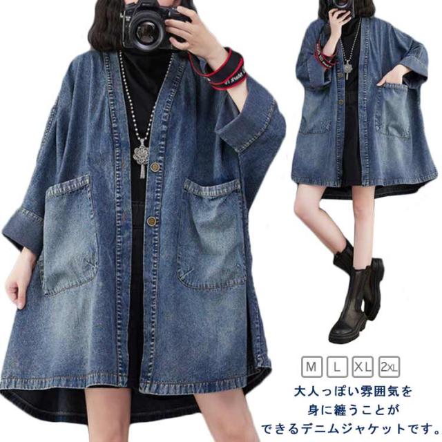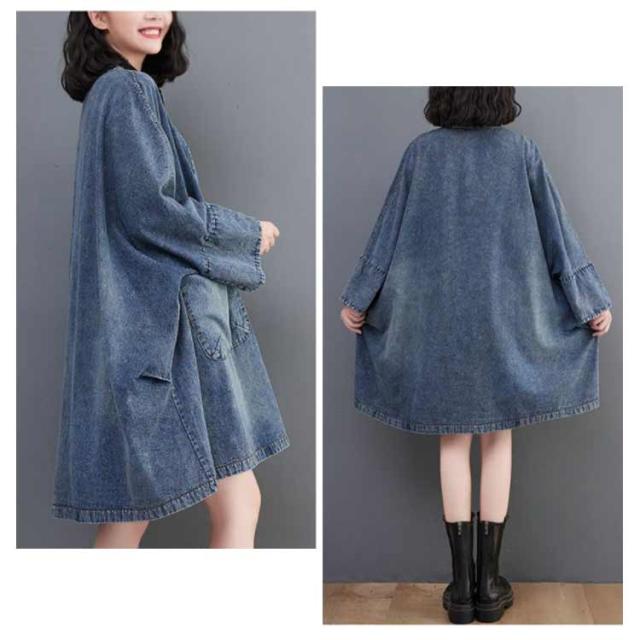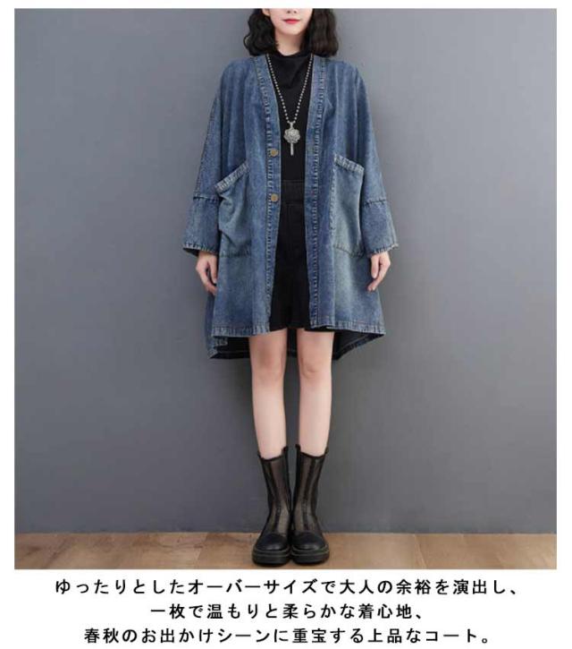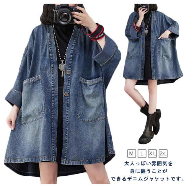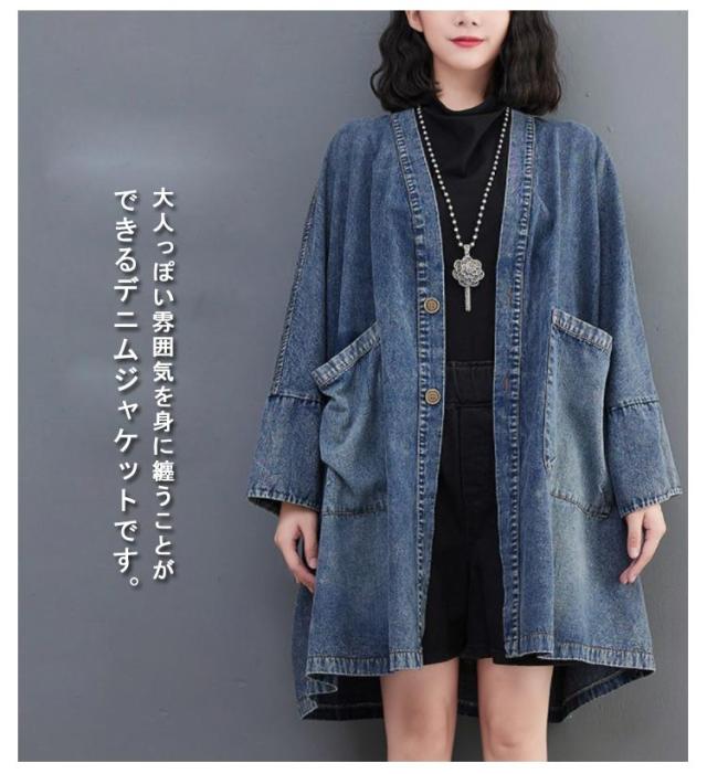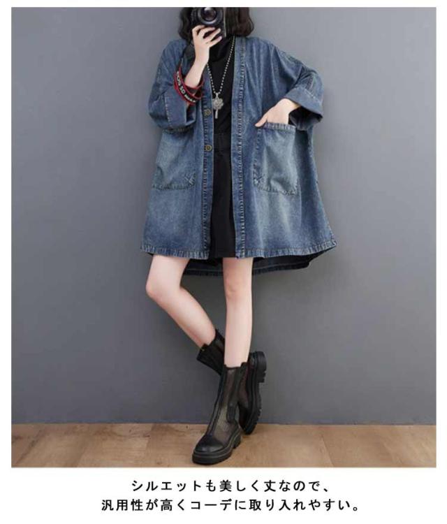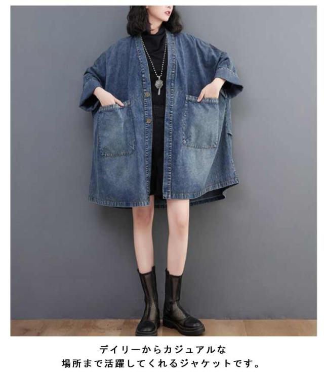 デニムコート ジャケット ブルー Gジャン ノーカラージャケット XL アウター ビッグシルエット デニムジャケット 長袖 カジュアルジャケット おしゃれ 春 秋 ビンテージ おしゃれ M L レディース