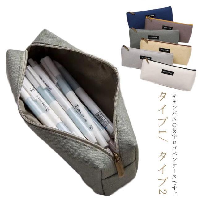 筆箱 シンプル 筆入れ 学生 グリーン 軽量 ペンケース 便利 収納ポーチ きれいめ 防水 キャンバスペンケース おまけ 文房具箱 収納袋 英字ロゴ キャンバス ファスナー おしゃれ グレー 白 大容量