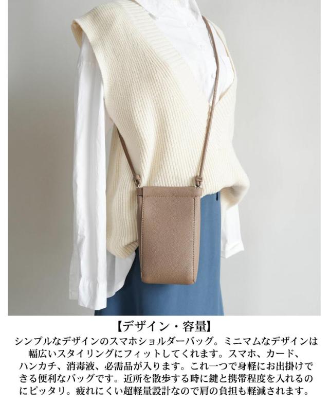 | スマホを気軽におしゃれに持ち運べる「スマホポーチ」。インスタでも話題話題のおしゃれなショルダー型。 【使用シーン】ちょっとした買い物に!通勤・通学に!犬の散歩に!子供とお出かけに!軽やかにこれーつでお出かけOK。カジュアルスタイルやフェミニンなコーデなどお洋服に合わせてご使用頂けます。オールシーズン、デイリーに使えるスマホショルダーバッグは普段使いに大変便利です。 【デザイン・容量】シンプルなデザインのスマホショルダーバッグ。ミニマムなデザインは幅広いスタイリングにフィットしてくれます。スマホ、カード、ハンカチ、消毒液、必需品が入ります。これ一つで身軽にお出掛けできる便利なバッグです。近所を散歩する時に鍵と携帯程度を入れるのにピッタリ。疲れにくい超軽量設計なので肩の負担も軽減されます。 【素材】肌触りの良いPUレザーを使用。やわらかい質感で雨の日も水滴を拭くことでより長くお使い頂けます。品良く持てるカラー、ブラック、ベージュ、ブラウン、コーヒー、カーキの5色展開。どの色も普段のファッションに似合うカラーをご用意しました。 【実用性】年齢を問わずご使用いただけるシンプルなデザインとコーディネートしやすい5色になっております。ショッピングやお散歩、通勤、通学、旅行、テーマパーク、パーティーに最適、春夏秋冬問わずお使い頂けます。恋人、お友達、ご家族へのギフトにも喜ばれています。 | |