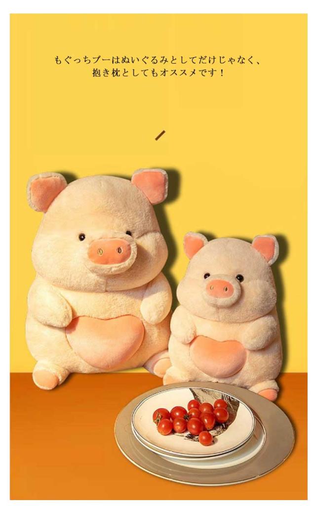 | コロコロ・ふわふわ、ぽっちゃりシルエットが魅力的な可愛いブタ型ぬいぐるみです。 もぐっちブーはぬいぐるみとしてだけじゃなく、抱き枕としてもオススメです! 高ストレッチ生地が体型に合わせて伸縮し、中材のパウダービーズの心地よい感触がリラックス効果を高めてくれます。 かわいいぬいぐるみを手触りの良い素材で、ずっと抱きしめていたくなっちゃう! 家の中はもちろん、車や会社で癒されること間違いなしのグッズです。 | |