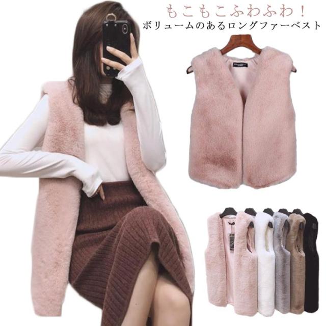 秋冬 レディース 毛皮ベスト ファーベスト ノースリーブ フェイクファーベスト Vネック ロングベスト Vネック 大人 ジレ モコモコ フワフワ ふわふわ きれいめ カジュアル 春秋