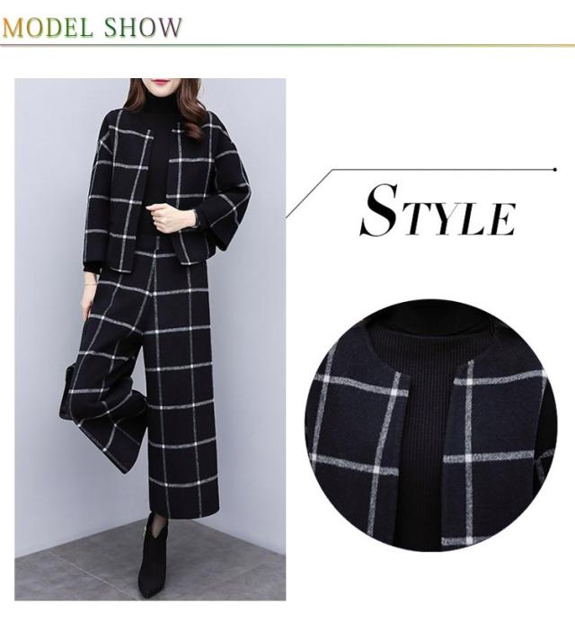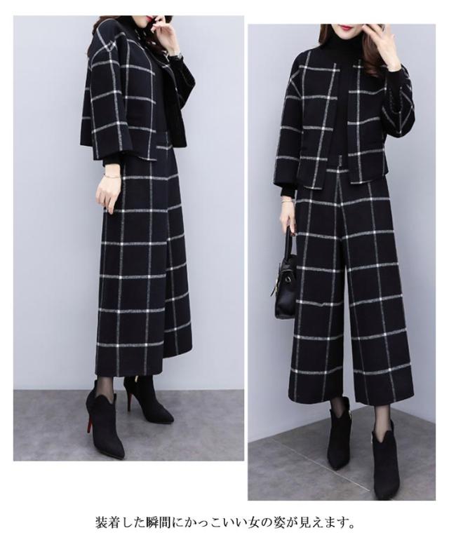 秋 パンツスーツ 入学式 ワイドパンツ オフィス スーツ セットアップ スーツ ママ ノーカラージャケット パンツ 卒業式 ワイドスリーブ レディース 2点セット 入学式 入園式 ビジネス 卒園式 チェック柄 グレンチェック 大人 きれいめ 春 パンツドレス