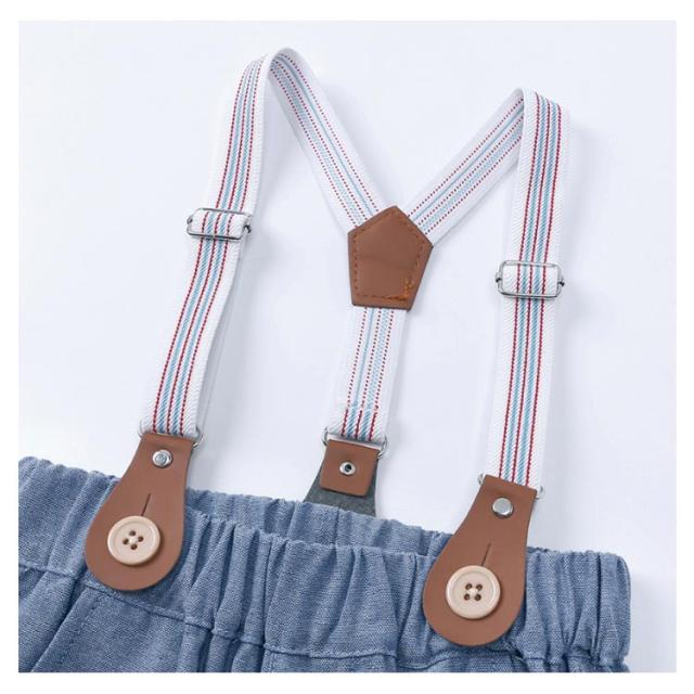| ・ロンパースタイプのワイシャツ&サスペンダー付きパンツの2点セット。 ・サスペンダーと蝶ネクタイは取り外し可能なのでコーデの幅が広いです。 ・おむつ交換が楽にできる股下スナップボタン♪ ・セパレートタイプだから上下別々に使えます。 ・夏らしい色合いでオン・オフどちらでも使えます。 ・入園や結婚式や発表会などにもオススメ! | |